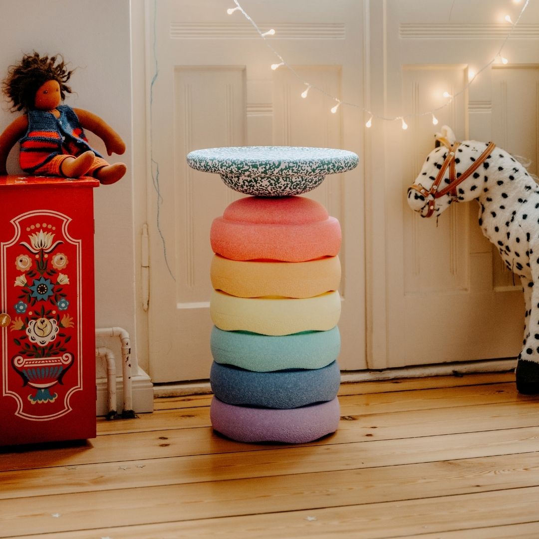 De Stapelstein-stenen zijn open-einde-speelgoed bij uitstek. Oftewel: speelgoed waarbij het doel niet vaststaat en waarmee je kind zelf allerlei fantasierijke spellen kan bedenken.Van stap-parcours door de kamer tot overgooispelletjes of spetterplezier in bad. Met deze vrolijke set in pasteltinten raakt je kind niet uitgespeeld.