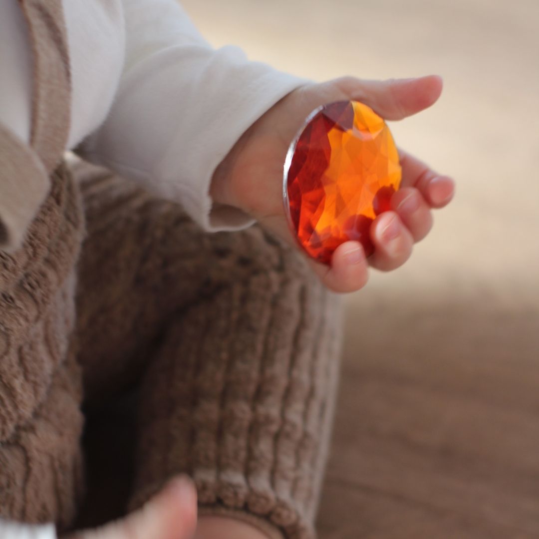 Deze set met 10 super grote glitterstenen nodigt gelijk uit tot spel. Je zult zien dat je kind van alles bedenkt met dit open einde-speelgoed. De glitterstenen hebben een prachtige fonkeling. De stenen zijn perfect te combineren met houten blokken, in het keukentje als etenswaren of in kinetisch zand.