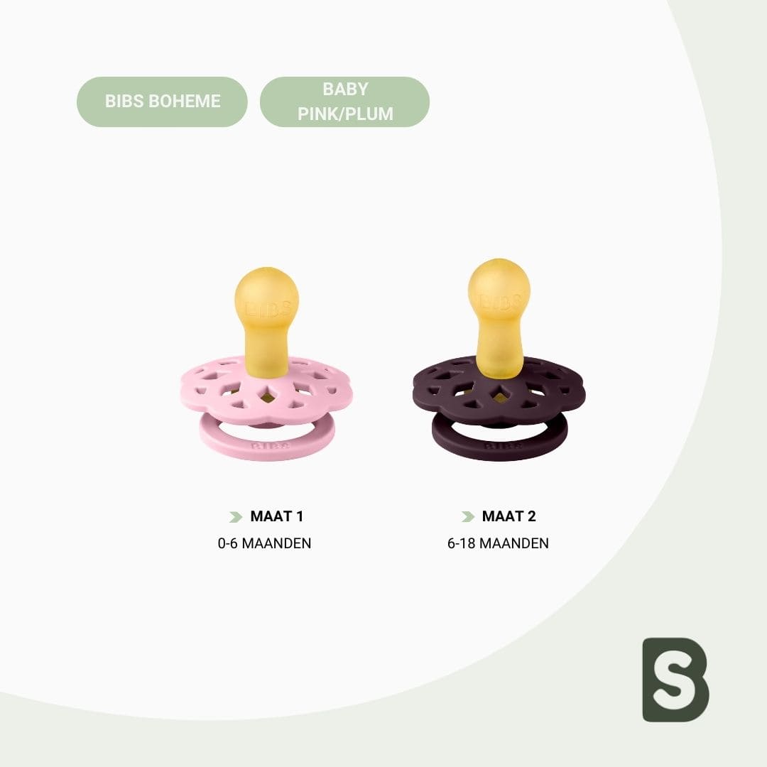 De BIBS speen is al decennialang een grote favoriet van baby’s. Deze 2-pack bevat twee BIBS Boheme spenen in de roze kleur baby pink en paarse kleur plum! Deze prachtige fopspeen biedt troost, kalmeert je kind en stilt de zuigbehoefte.