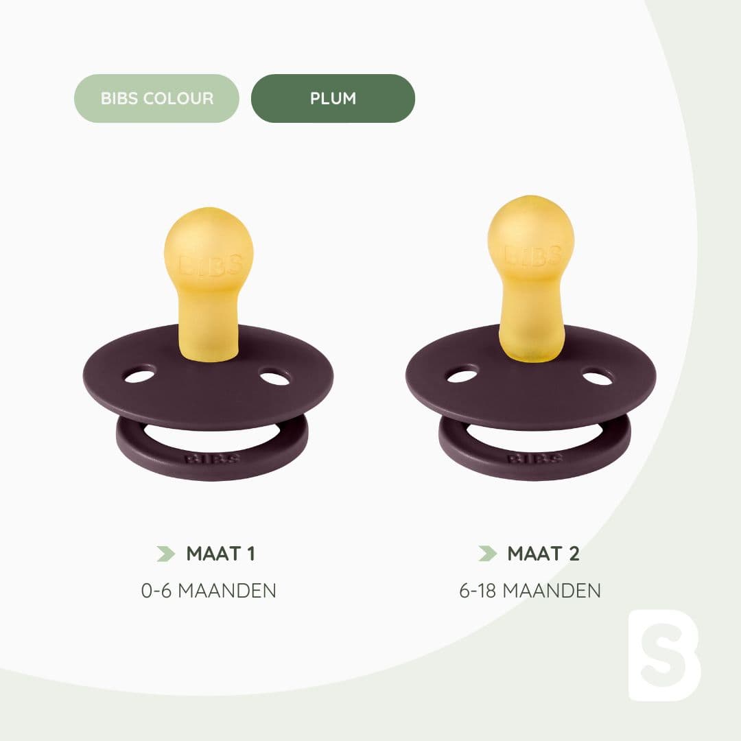 BIBS Colour Plum is de originele fopspeen van BIBS met kersvormige speen van 100% natuurlijk rubber.
