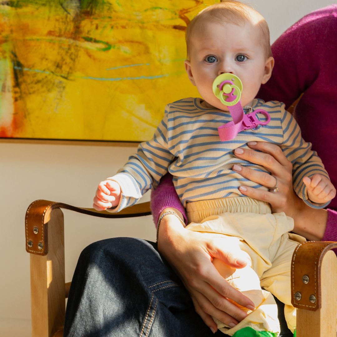 Het speenkoord matcht perfect met BIBS speen in de kleur bubblegum en blush.