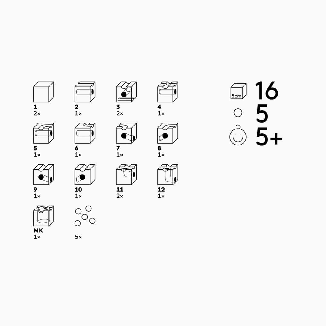 - Inhoud verpakking: 16 blokken en 6 knikkers