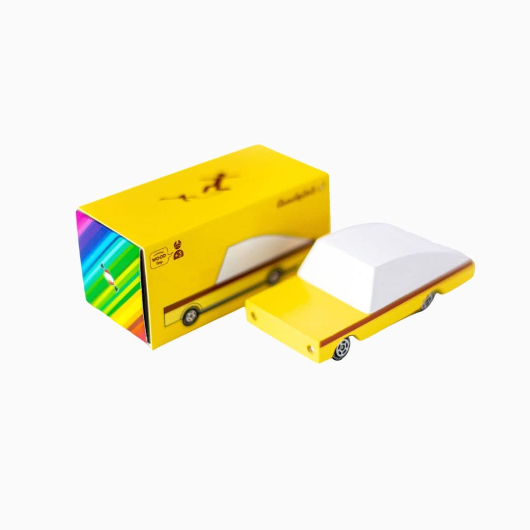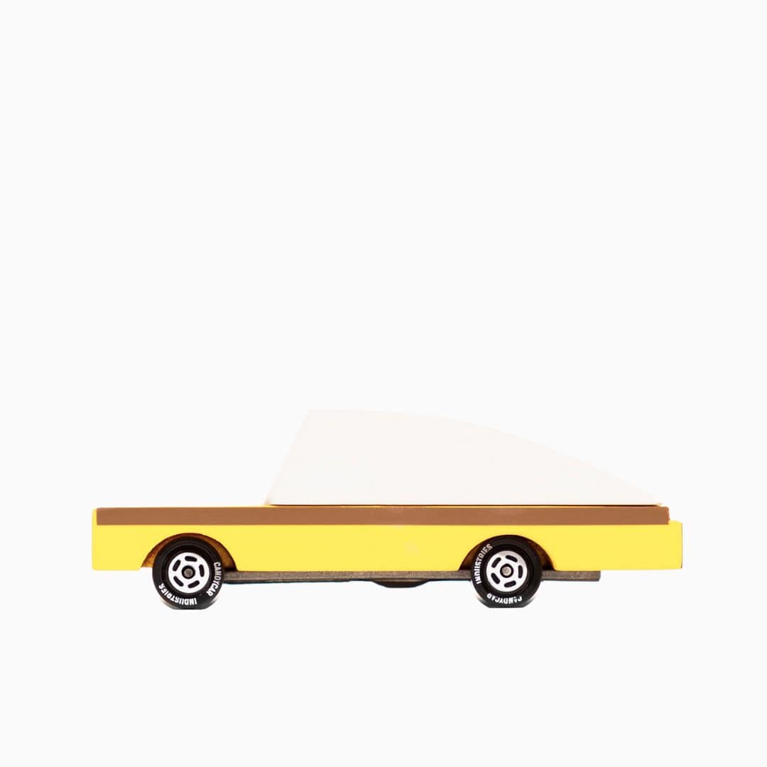 Deze gele auto is supertof te combineren met de flexibele autobaan van Waytoplay Toys en de andere Candylab Toys auto's.