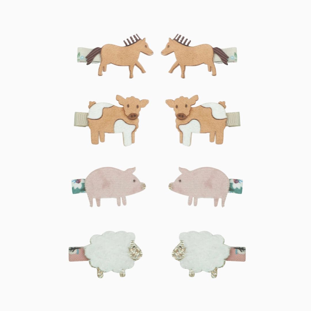 Deze set van Mimi & Lula bestaat uit acht speldjes met haarclipjes boerderijdieren.