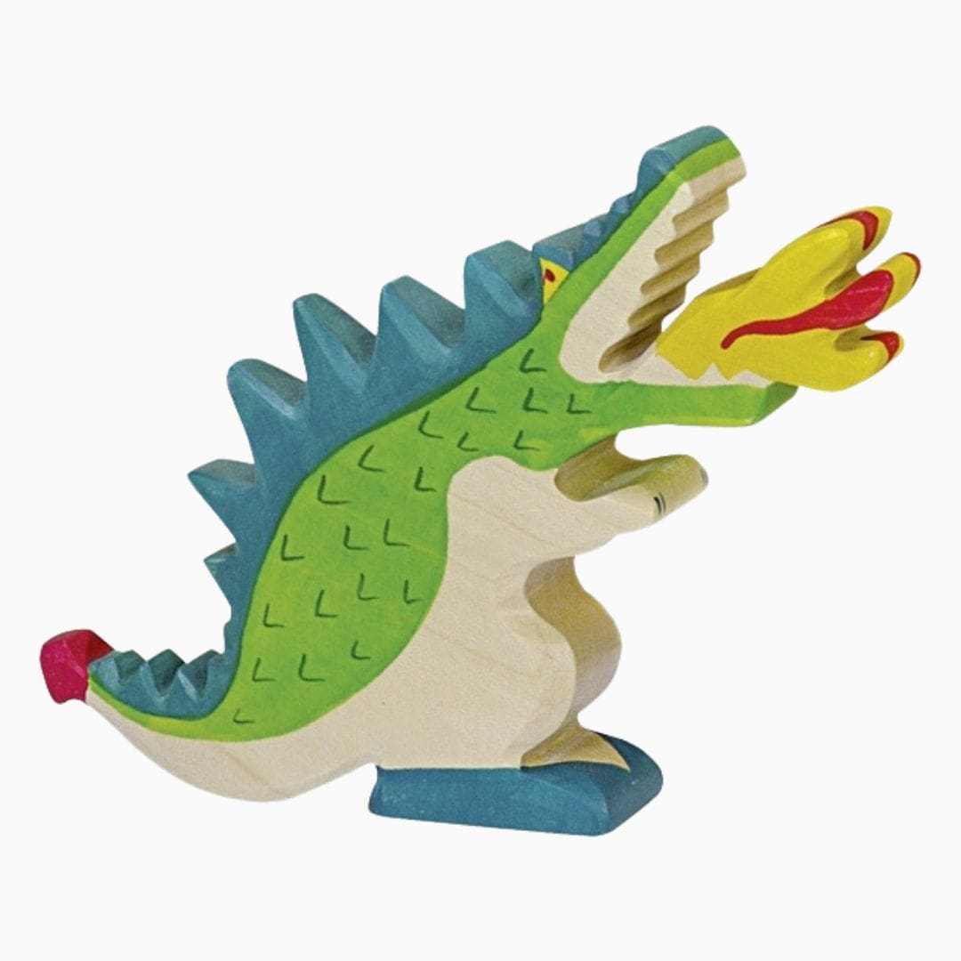 Houten groene draak van Holztiger. De draak is makkelijk vast te pakken en prikkelt de fantasie van je kind.