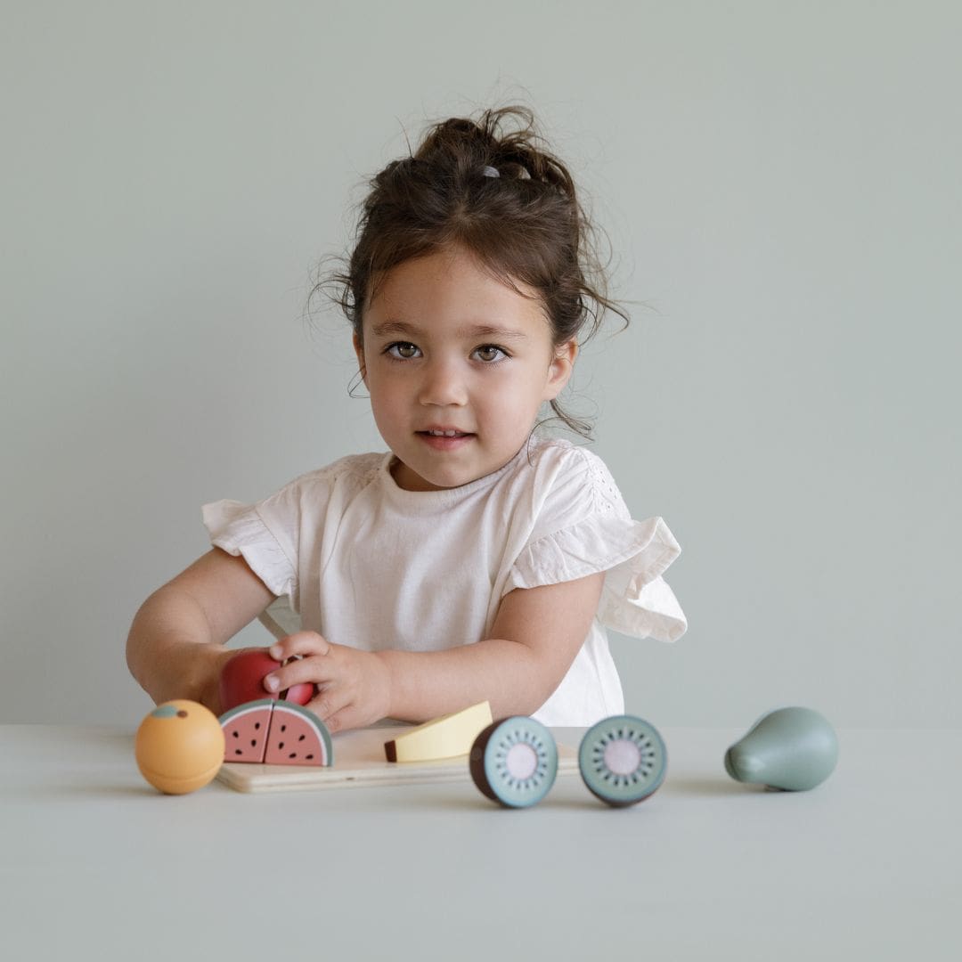 Tip! Combineer de houten snijset fruit met de snijset groenten en houten weegschaal van Little Dutch. Zo wordt koken echt leuk!