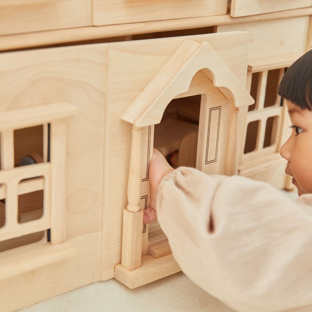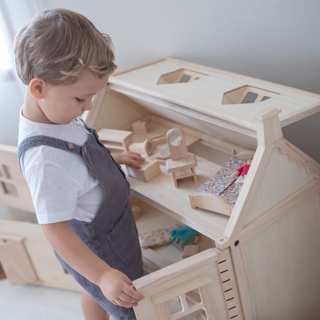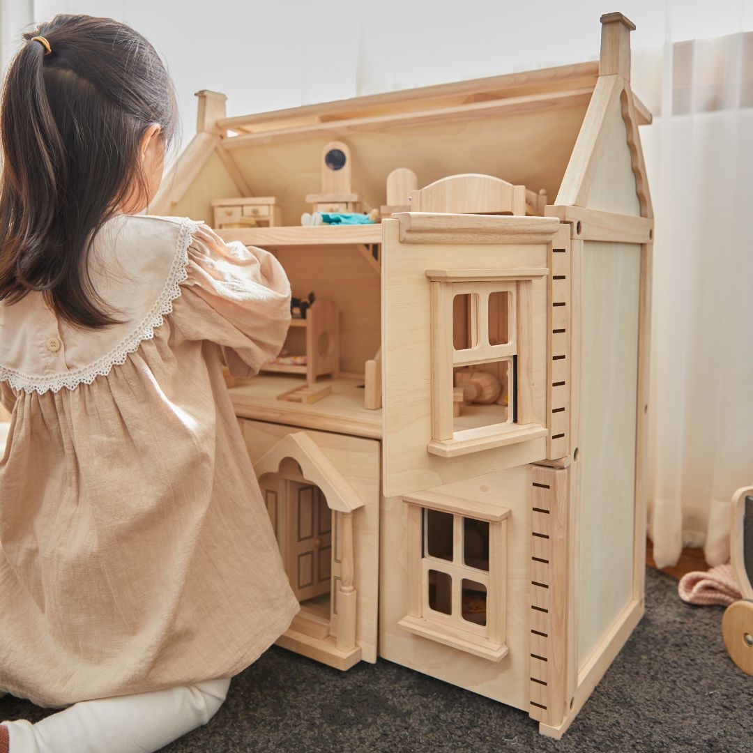 - Het poppenhuis wordt geleverd zonder meubels en popjes.