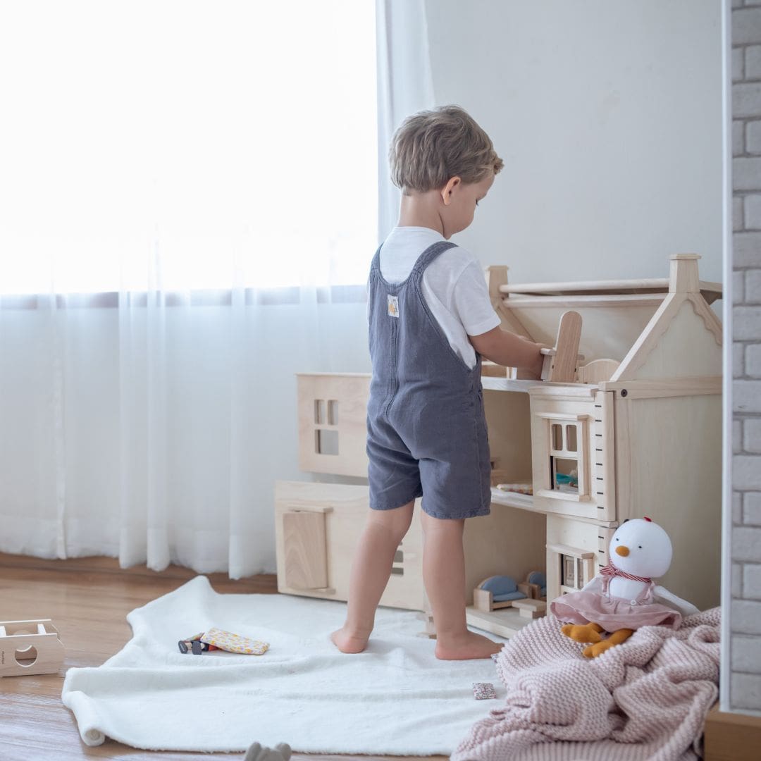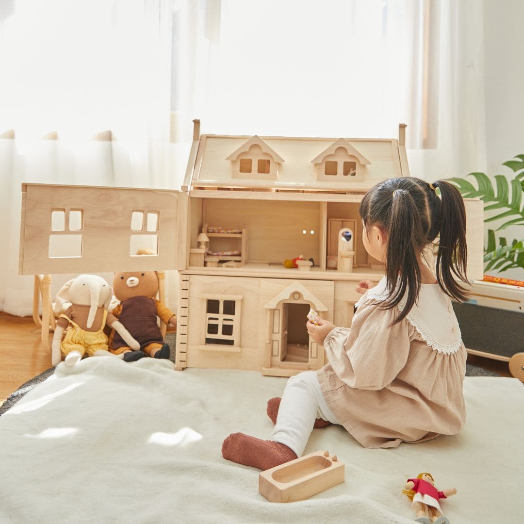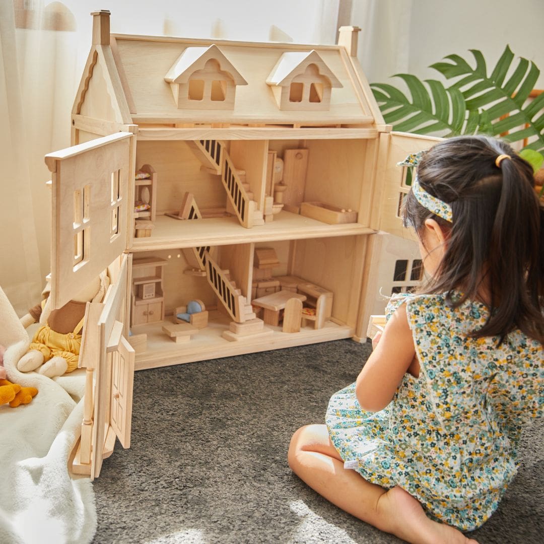- Het poppenhuis wordt geleverd zonder meubels en popjes.