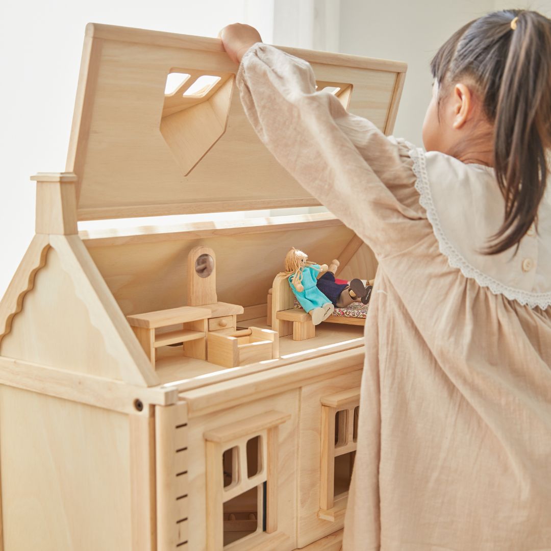 Dit indrukwekkende poppenhuis is een echte eyecatcher. Het grote, oerdegelijke speelgoedhuis bestaat uit een begane grond, 1e verdieping en een zolder die met elkaar zijn verbonden door het trappenhuis! Elke verdieping is makkelijk toegankelijk door de openslaande panelen. De deur en ramen kunnen echt open en het dak met dakkapellen kan aan één kant worden terug geklapt.