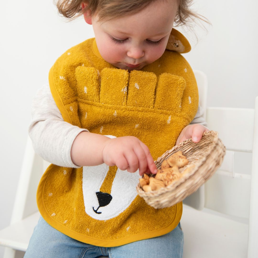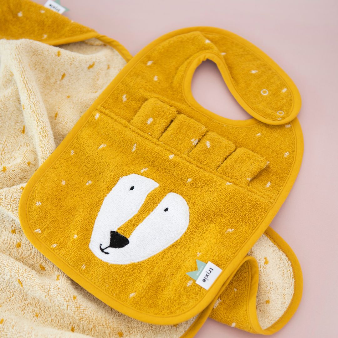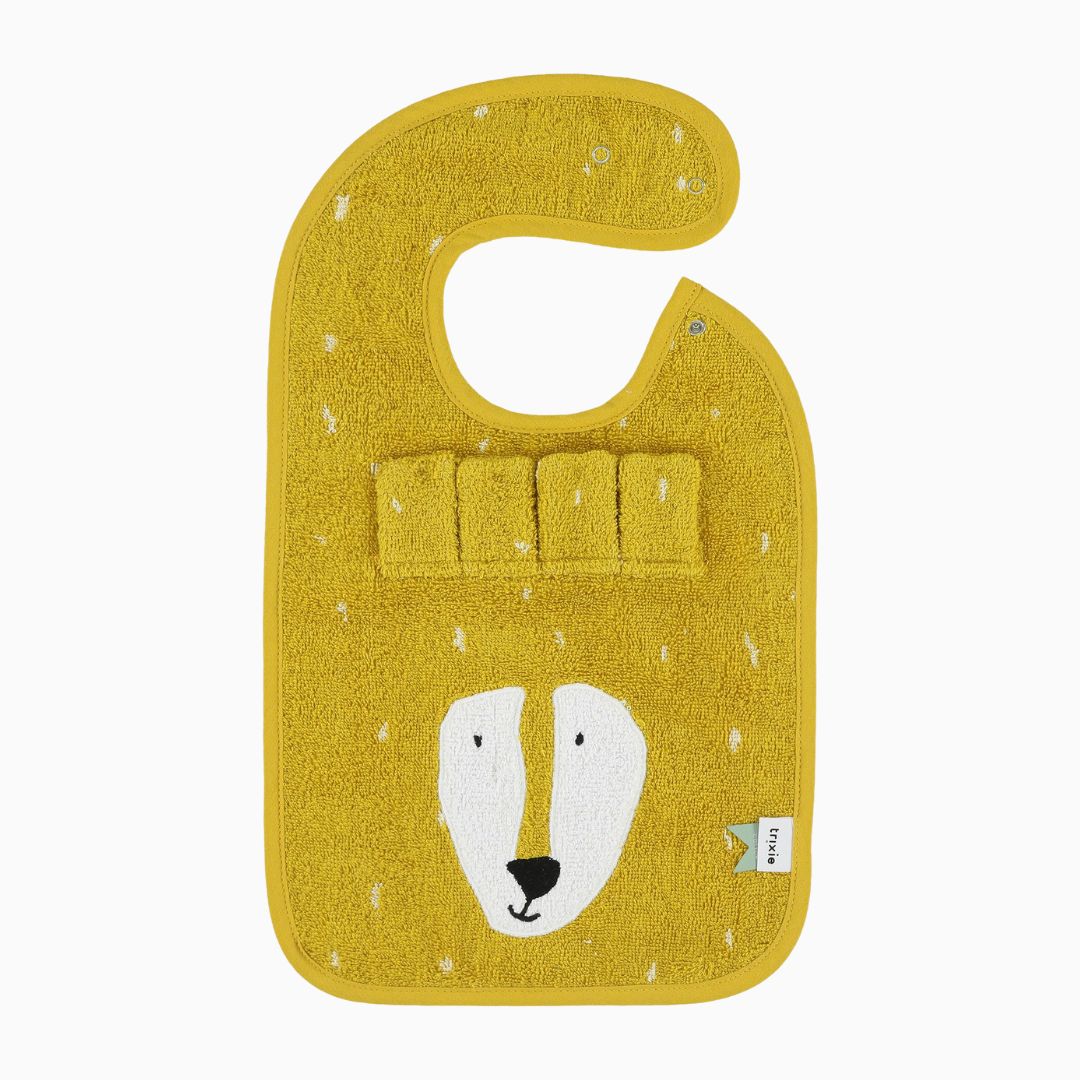 Dit vrolijke slabbetje houdt de kleren van je kind schoon tijdens het eten. Je bevestigt de slab gemakkelijk door de drukknoopjes aan de zijkant. Er zitten twee drukknoopjes op de slab, zodat je deze in maat kan verstellen. Zo groeit de slab met je kind mee. De Trixie slab is gemaakt van 100% biologisch katoen dat super zacht is en goed absorbeert.