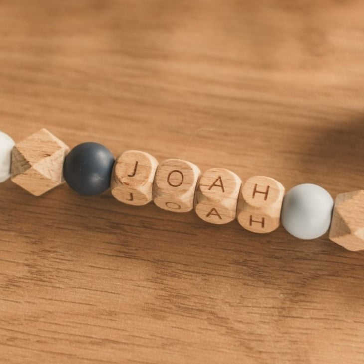 - Bijtring met naam. Bijtringen zijn bij bijna alle baby’s favoriet. Ze zijn ideaal om het doorkomen van de tandjes minder pijnlijk te maken en zijn door de verschillende texturen, vormen en geluidjes ook geweldig voor baby’s om aan te voelen en te sabbelen. Bij ons kun je een bijtring met naam helemaal naar jouw smaak laten maken. Kies je eigen kleuren en prints. Dan maakt Iris er iets moois van.