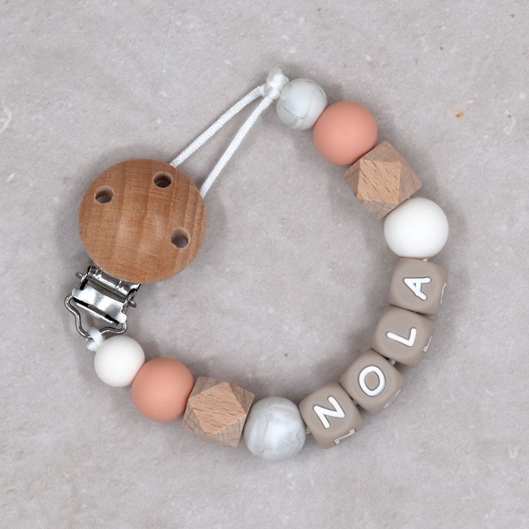 Iris kiest haar materialen zorgvuldig uit. De beukenhouten (letter)kralen zijn stevig, splinteren niet en hebben van nature een antibacteriële werking. De siliconen kralen zijn 100% vrij van BPA en andere schadelijke toevoegingen. Studio Bambacht gaat voor kwaliteit!