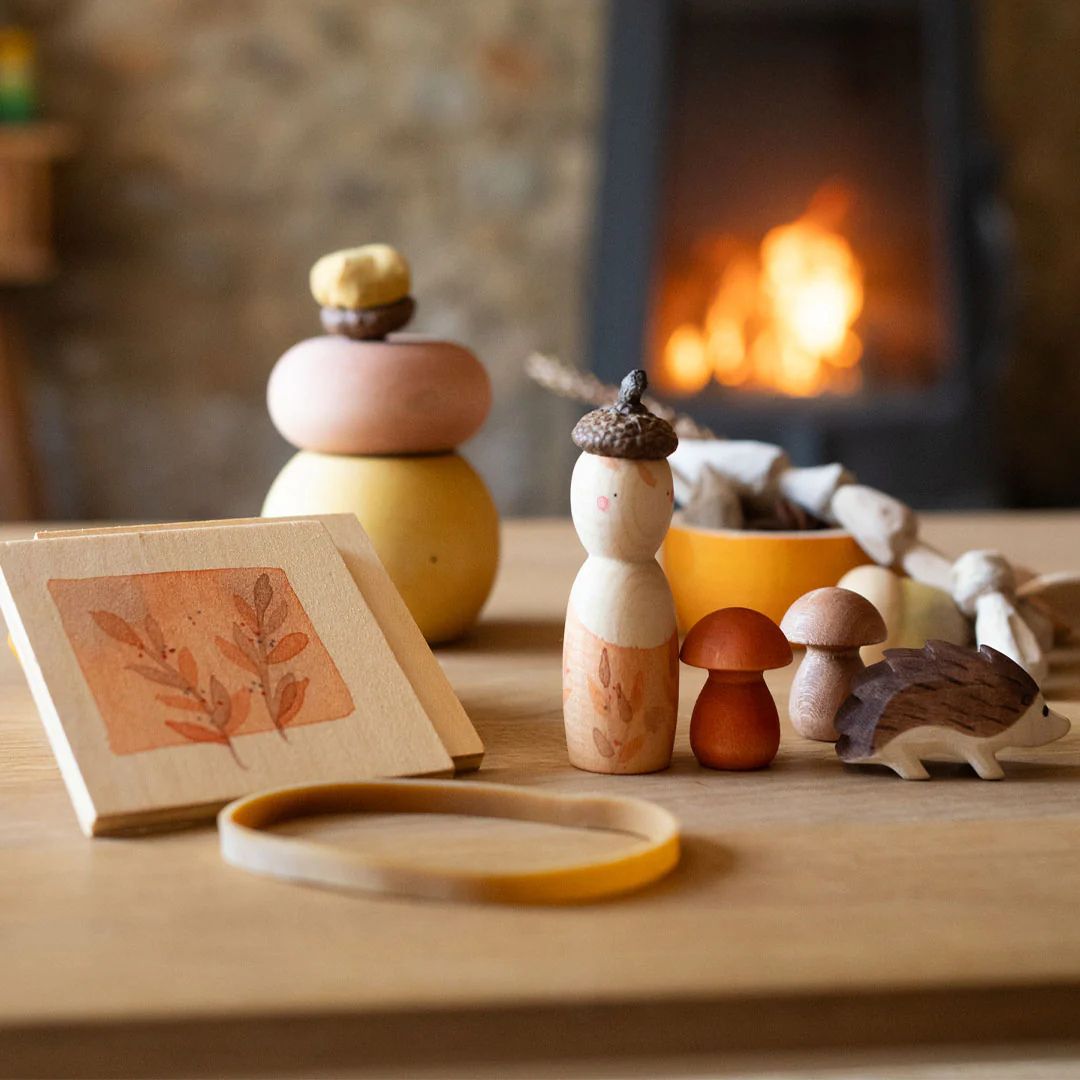 De limited edition 'Hello Autumn' seizoensbox van Grapat en Ostheimer nodigt je uit in het warme landschap van de herfst! Deze unieke set zit vol houten schatten, speciaal ontworpen om de vallende bladeren, koele briesjes en de oogsttijd tot leven te brengen. Een perfecte uitbreiding bij het andere open-einde-speelgoed.