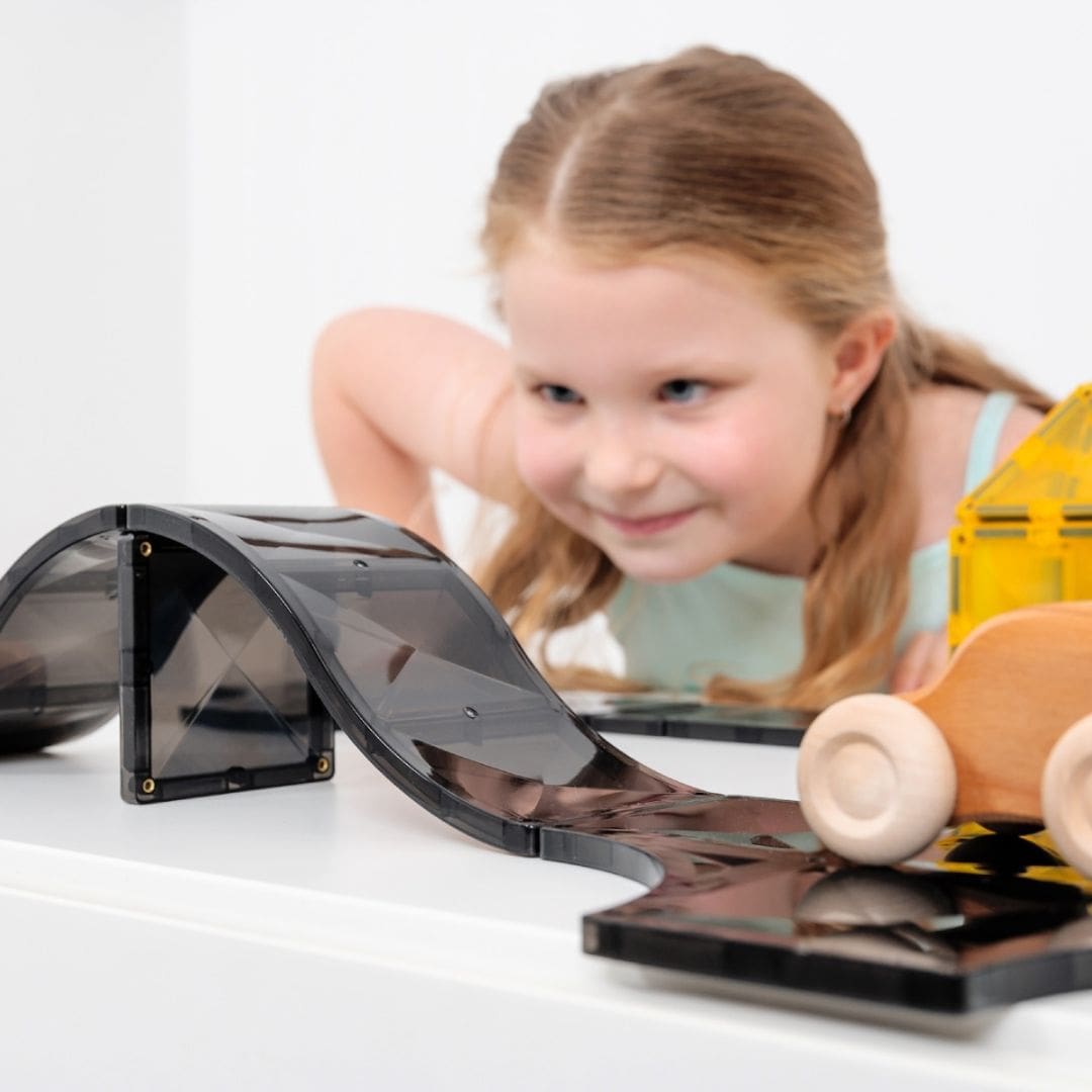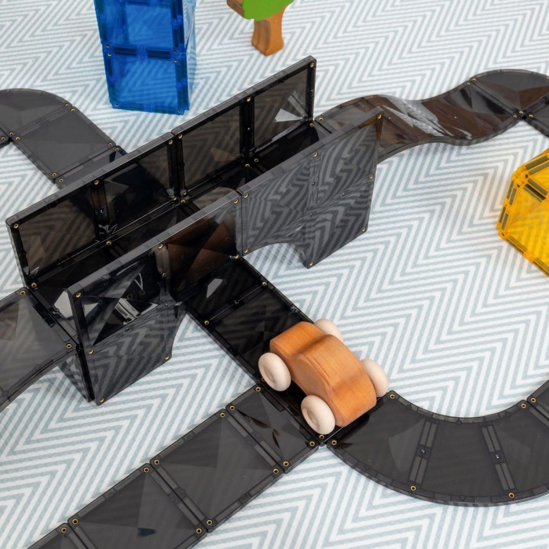 Speeltip! De wegenset van CONNETIX combineert perfect met andere magnetische tegels, zoals de Rectangle en Shape pack. Zo creeër je eigen small world play-setting met bijvoorbeeld houten voertuigen, houten dieren, gebouwen en meer.