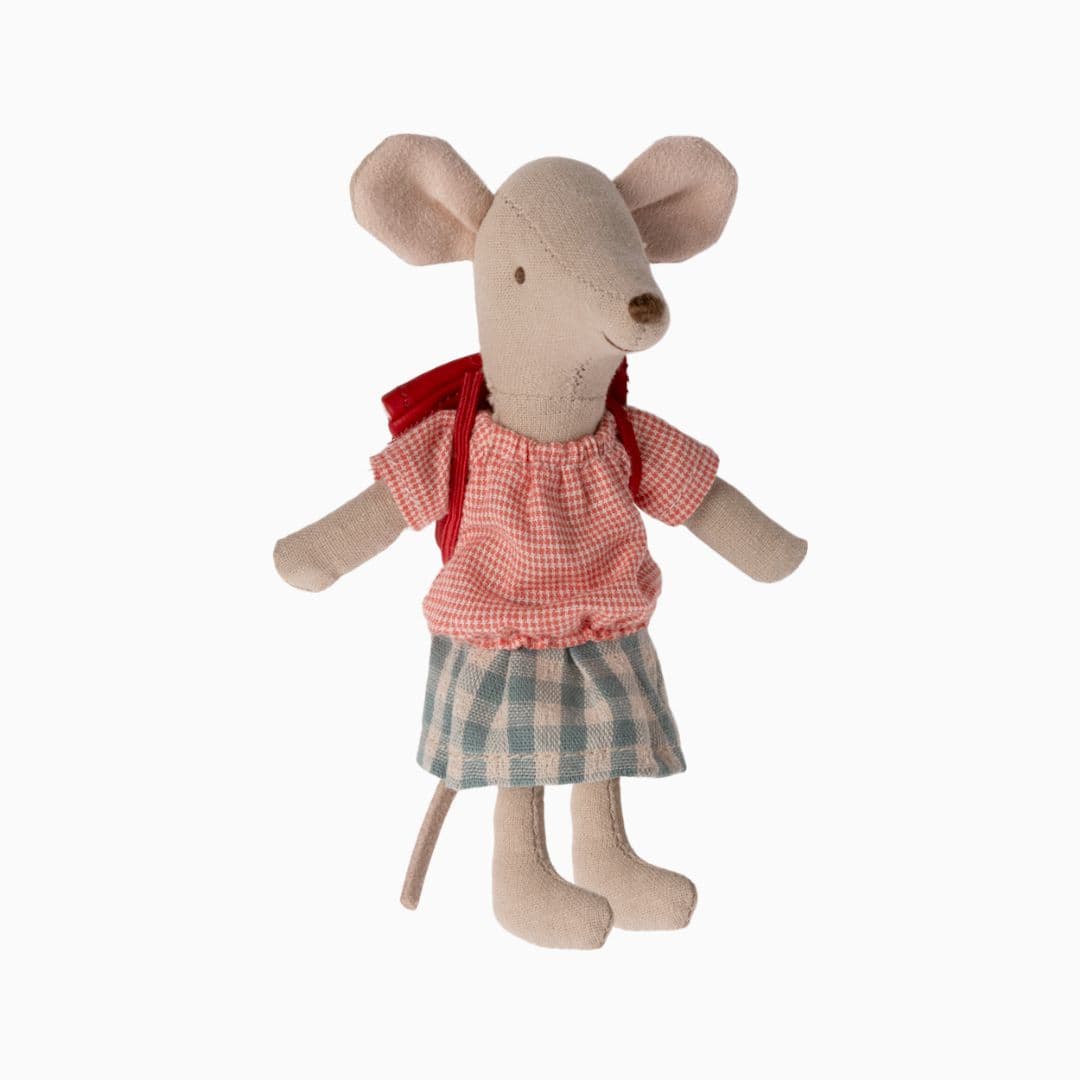 - Inhoud verpakking: 1 grote zus muis met geruite top, rok en rugtas