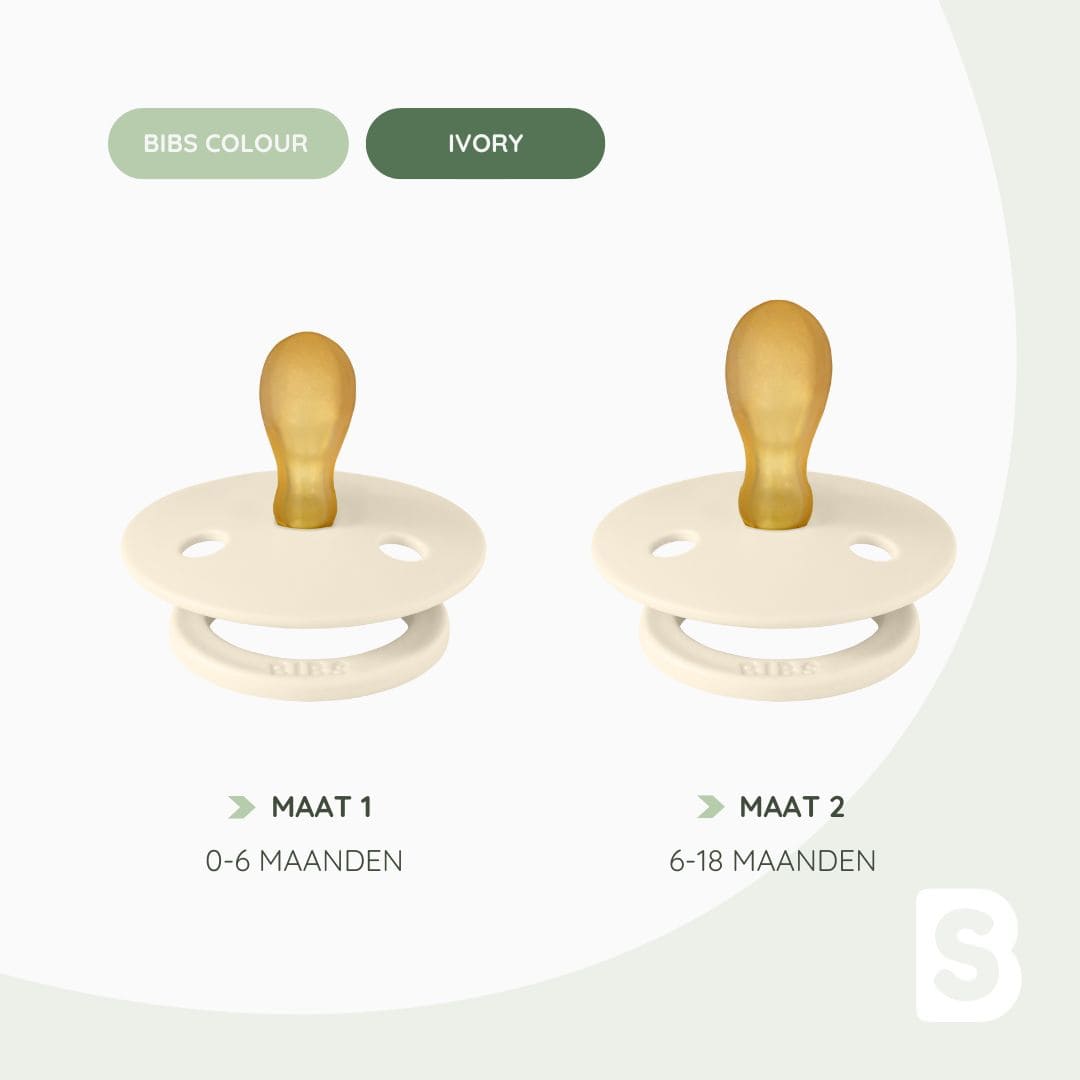 Deze BIBS Colour symmetrische speen in de kleur ivory, is een échte gamechanger! Deze 100% natuurrubberen fopspeen biedt troost, kalmeert en voorziet in de zuigbehoefte van je kindje. De symmetrische speen heeft een platte basis met een rond en ovaal zuiggedeelte. De symmetrische speenvorm houdt de tong plat in het mondje en duwt de fopspeen tegen het gehemelte aan. Zo hoeft je kleintje niet zo hard te zuigen.