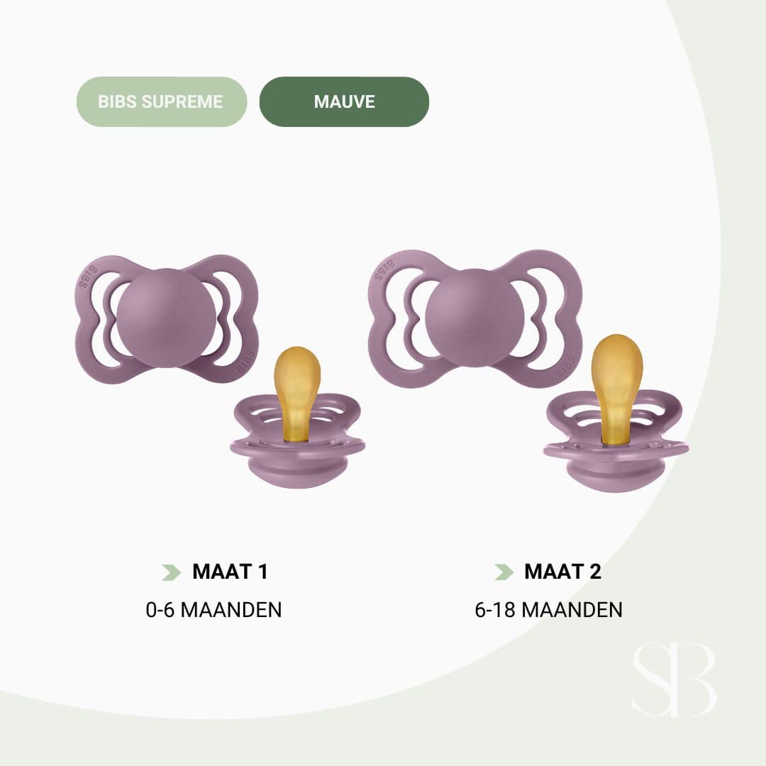 De BIBS Supreme latex fopspenen zijn verkrijgbaar in twee maten;