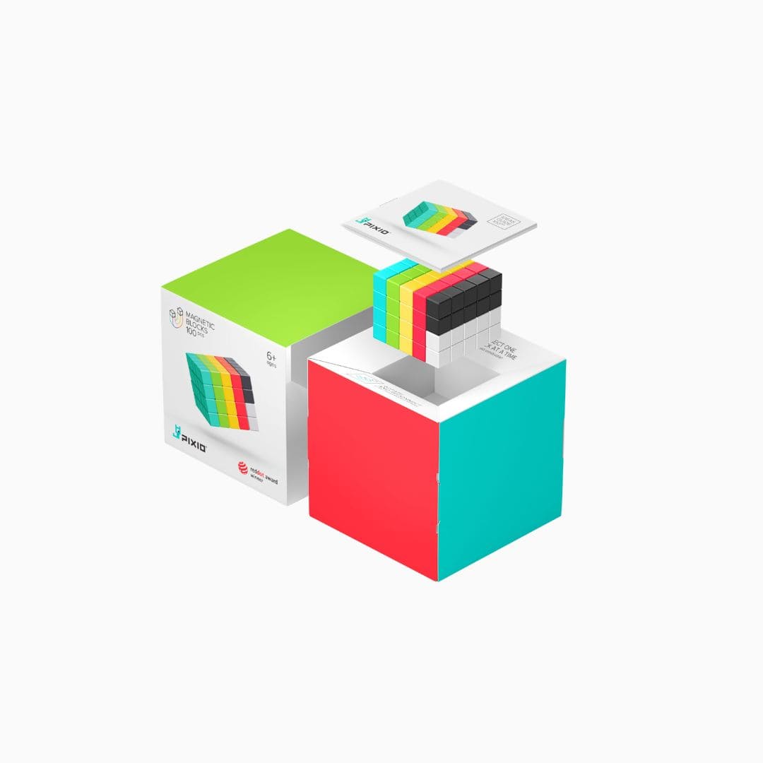 Ontwerp, bouw en creëer in pixelstijl met de magnetische blokjes van PIXIO! Deze kleine, kleurrijke magnetische kubusjes klikken aan alle zijden aan elkaar, waardoor je eindeloos kunt bouwen in 2D én 3D.