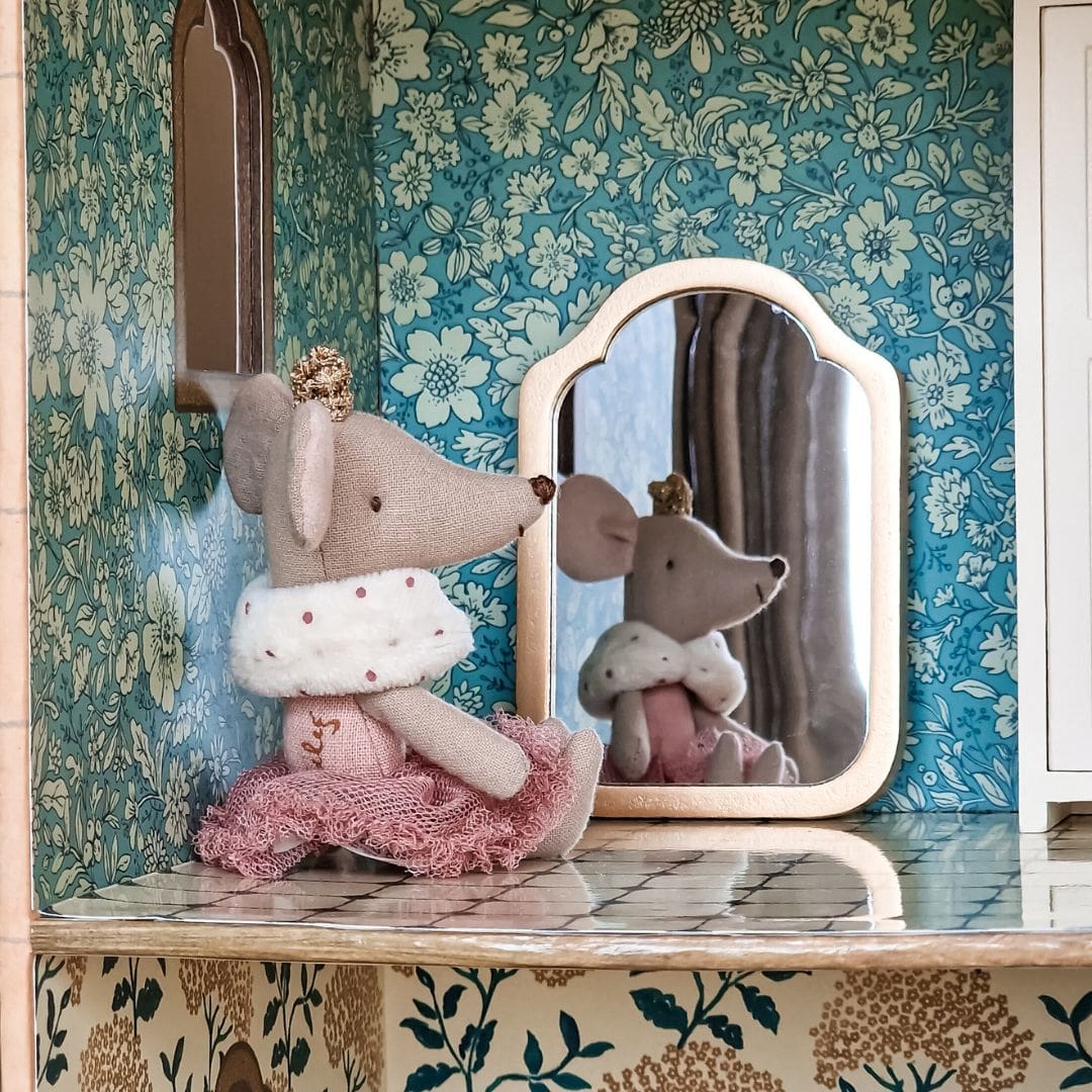 De spiegel is stevig, veilig en gemaakt van duurzame materialen die tegen een stootje kunnen. Mooi te combineren met de Maileg-meubels en accessoires voor een warme, speelse sfeer.