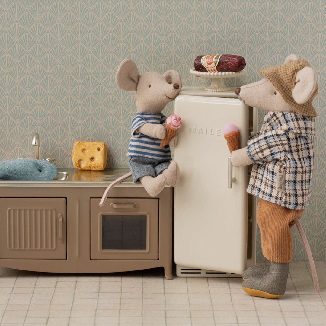 De Maileg opa muis is een lieve, karaktervolle aanvulling op de Maileg muizenfamilie. Met zijn grijze snor, brilletje en comfortabele kleding straalt hij de warmte en wijsheid uit van een echte opa.