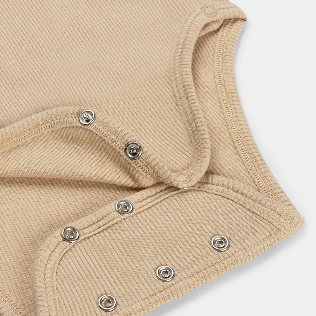 Aan- en uitkleden was nog nooit zo makkelijk. Dankzij de overslag met drukknoopjes hoef je de Romp & Roll romper niet over het hoofd van je baby te trekken. Deze zachte beige tint ‘dunes’ matcht met iedere outfit in de kast.
