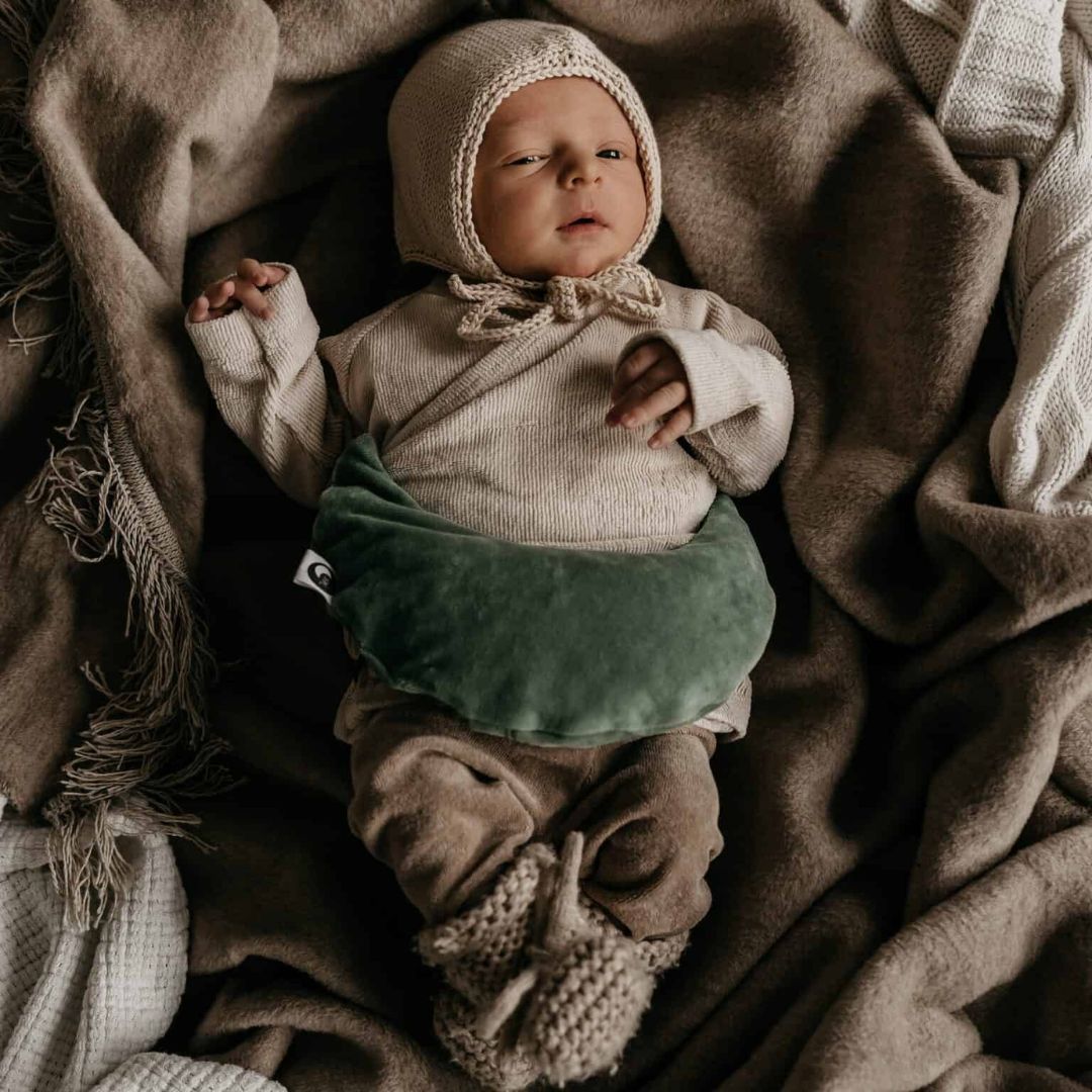 Let op – het Warmtemaantje XL is te zwaar voor het babybuikje. Gebruik hiervoor het ‘standaard’ model van circa 175-200 gram.