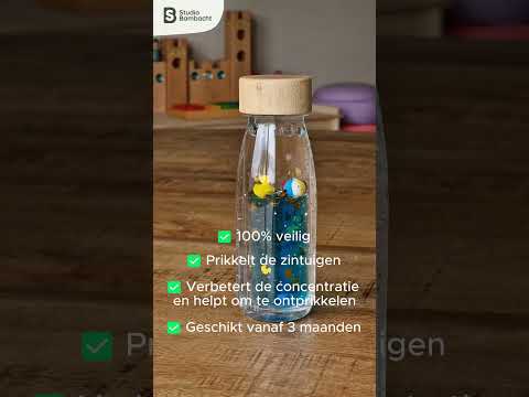Deze fles helpt je kind om te vertragen. Om even stil te staan in een drukke dag. Of gewoon om zich te verliezen in verwondering. Baby’s kunnen er al vanaf 3 maanden veilig mee spelen. Voor peuters en kleuters is het een ideaal hulpmiddel om te ontprikkelen, zich te concentreren of om verhalen te verzinnen.