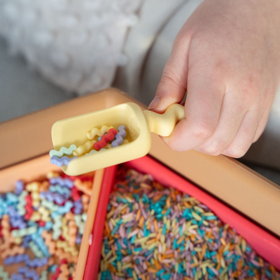 Een handzaam schepje voor groots speelplezier. Dit lichtgele speelschepje waves van Grennn heeft precies het juiste formaat voor kleine kinderhandjes. Onmisbaar accessoire in de speelbak met kinetisch zand of speelrijst. Een schepje nodigt direct uit tot spel.