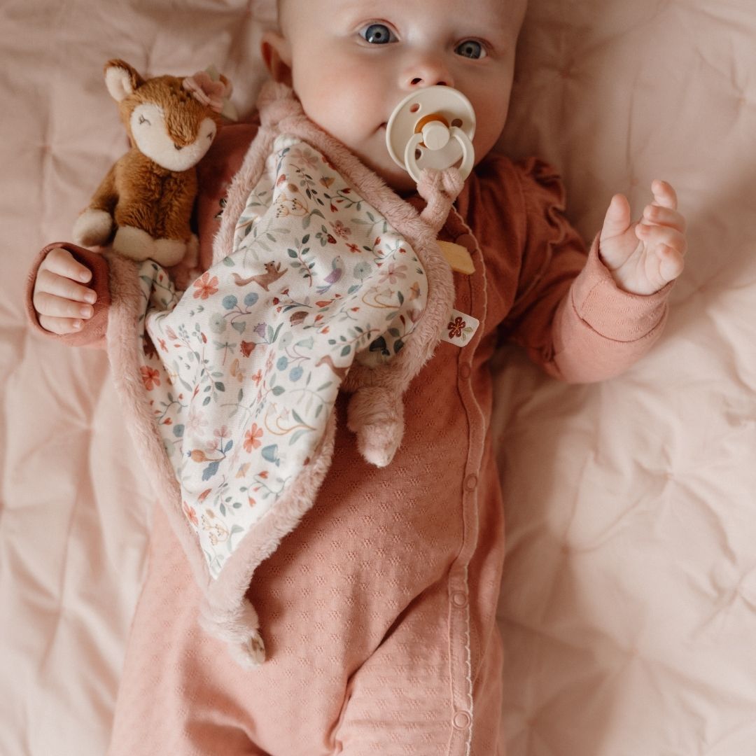 Kindjes hebben dit troostrijke knuffeldoekje graag binnen handbereik in de box of in de wagen. Het is bedrukt met onze Fairy Garden print en biedt vele leuke details om te ontdekken. Denk aan leuke labels die de zintuigen prikkelen en een katoenen lus om eenvoudig een speen of bijtring aan te bevestigen. Het superzachte hertje geeft dit knuffeldoekje een speelse uitstraling.