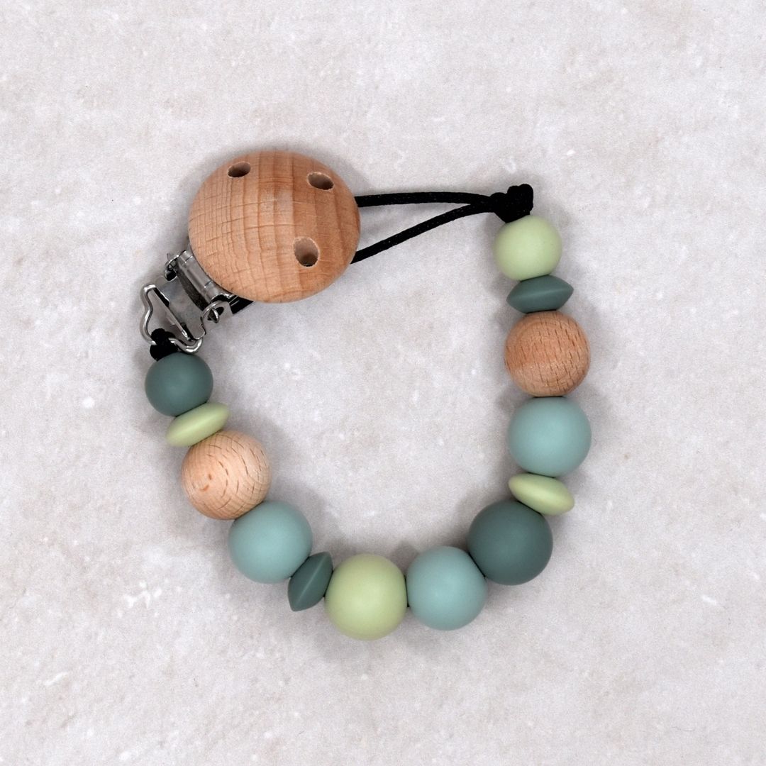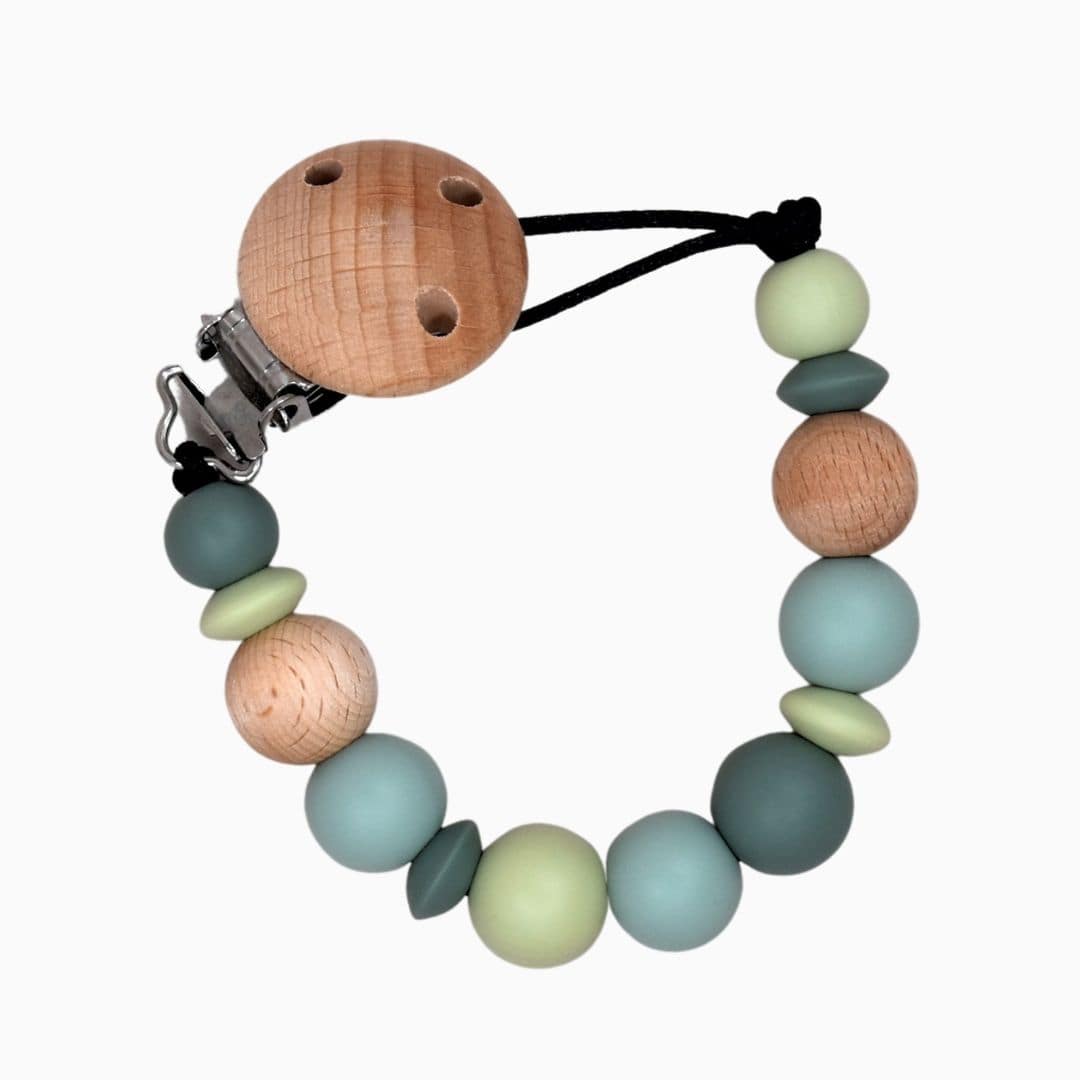De speenkoorden van Studio Bambacht zijn een echte, stijlvolle musthave voor jouw kleintje. De speenkoorden bestaan uit een mix van beukenhouten en siliconen kralen. Met dit unieke speenkoord raak je de speen van jouw kleintje nooit meer kwijt en is de speen altijd bij de hand. Bevestig een speen aan het speenkoord via het lusje en bevestig het speenkoord via de clip. Het speenkoord matcht perfect bij de BIBS speen in de kleur petrol.