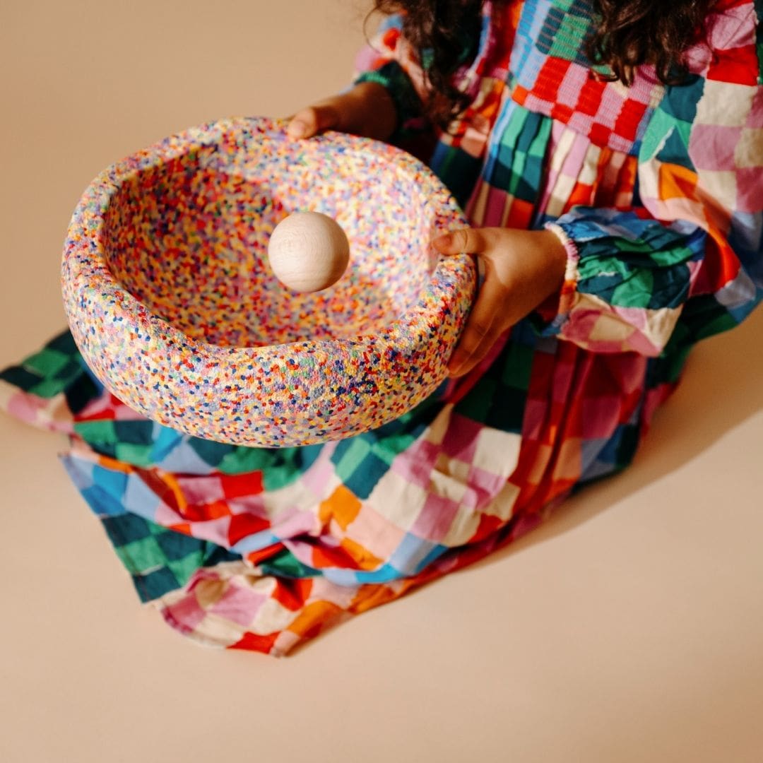 Met deze vrolijke super confetti steen breid je jouw collectie stapelstenen uit voor nog meer speelplezier.