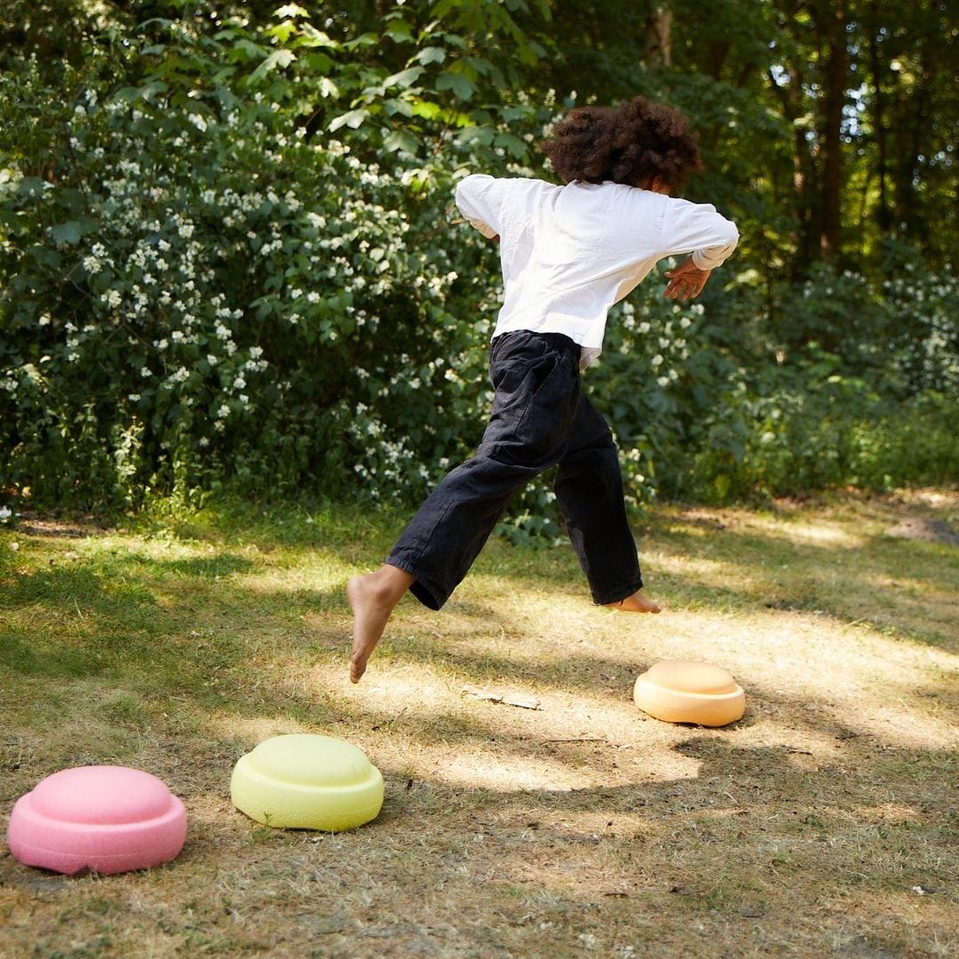 De Stapelstein stenen zijn super leuk open einde speelgoed voor je kind. Gebruik de steen als opstapje, stapel ze op elkaar, oefen je balans of gooi er pittenzakjes in. Spring van steen naar steen, draai rondjes of maak uitdagend parcours maken. De spelmogelijkheden zijn eindeloos.