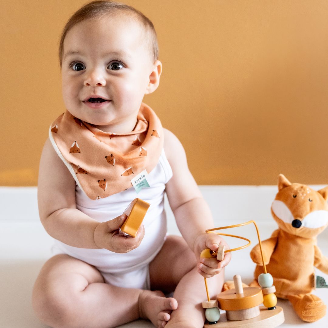 Deze bandana slabben van Trixie vangt de kwijl van je kindje in stijl op. Welk kindje wordt er nu niet blij van deze lieve vos? Deze fashionable slab bevestig je met de drukknoopjes eenvoudig als bandana om de nek van je mini. Er zitten twee drukknoopjes op de slab, zodat je deze in maat kan verstellen. Zo groeit de slab met je kind mee. De Trixie slab is gemaakt van 100% biologisch katoen dat super zacht is en goed absorbeert.