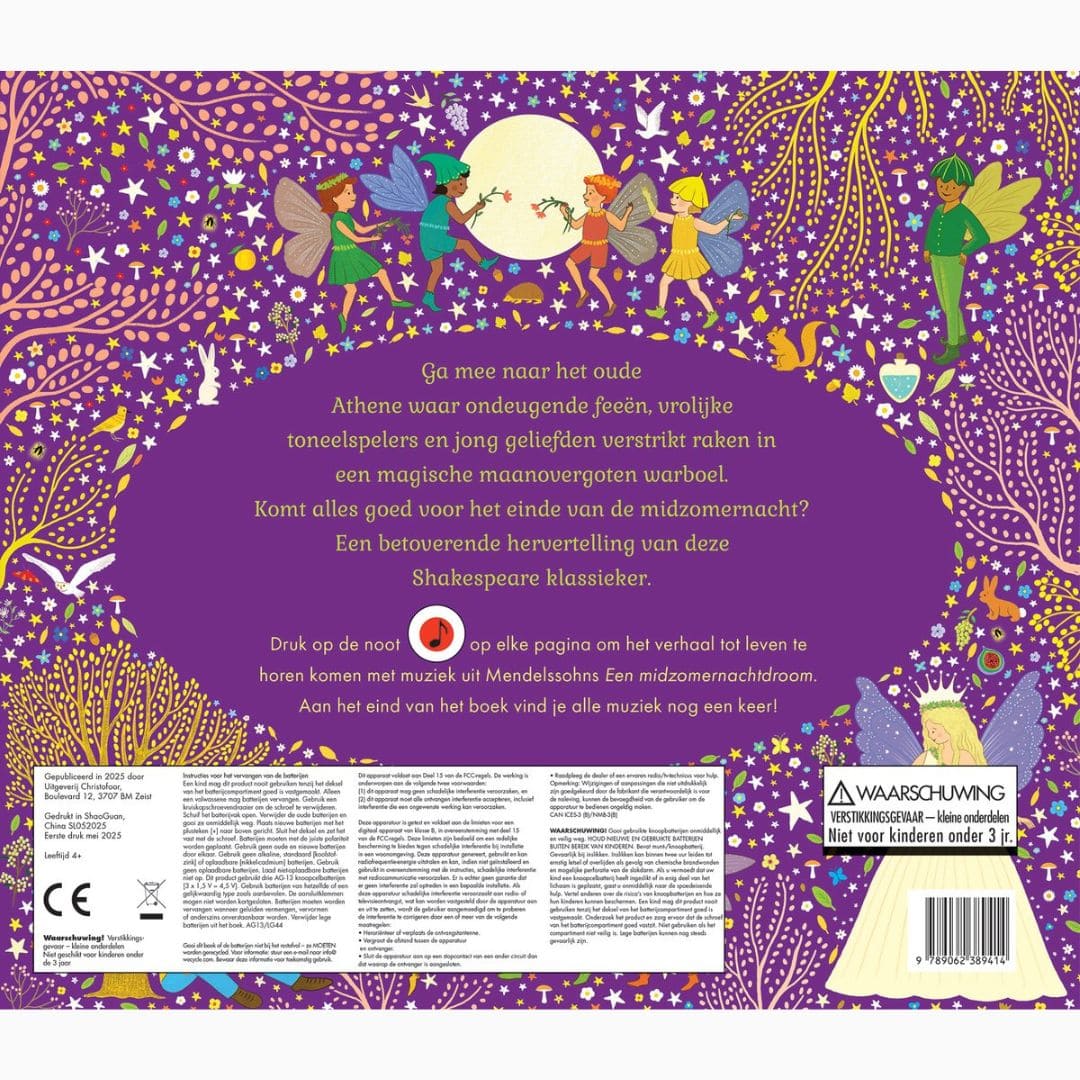 Ga mee naar het oude Athene waar ondeugende feeën, vrolijke toneelspelers en jonggeliefden verstrikt raken in een maanovergoten warboel. Komt alles goed voor het einde van de midzomernacht? Op elke bladzijde staat een muzieknoot en als je daar op drukt… komt het seizoen in klank tot leven met muziek uit Een Midzomernachtsdroom van Shakespeare. Wat een verrassing!