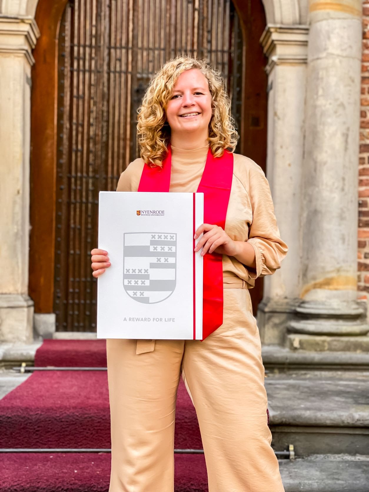 Vervolgens ben ik in 2019 aan Nyenrode Business Universiteit gestart met een Master in Management. Hier wilde ik graag mijn business en ondernemende skills verder ontwikkelen, zodat ik mijn creatieve en ondernemende skills in de toekomst kon gaan combineren. Ook hier kon ik het niet laten om me verder te ontwikkelen op creatief gebied. Mijn afstudeerscriptie ging dan ook over het effect van kennis op creativiteit in de mode-industrie. Mijn afstudeerscriptie werd beloond met een 8! Een prestatie waar ik heel trots op ben.