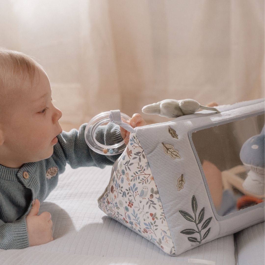 Deze veelzijdige Little Dutch activiteiten driehoek neemt kleine kinderen mee op avontuur terwijl ze op hun buik liggen. Onderweg valt er veel te ontdekken. Van knisperende bladeren en spiegeltjes tot een rammelende vos. Het product heeft speelse functies en leuke texturen die de zintuigen en verbeeldingskracht van je baby prikkelen.
