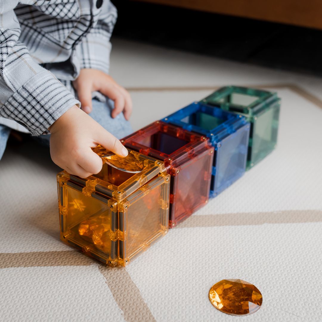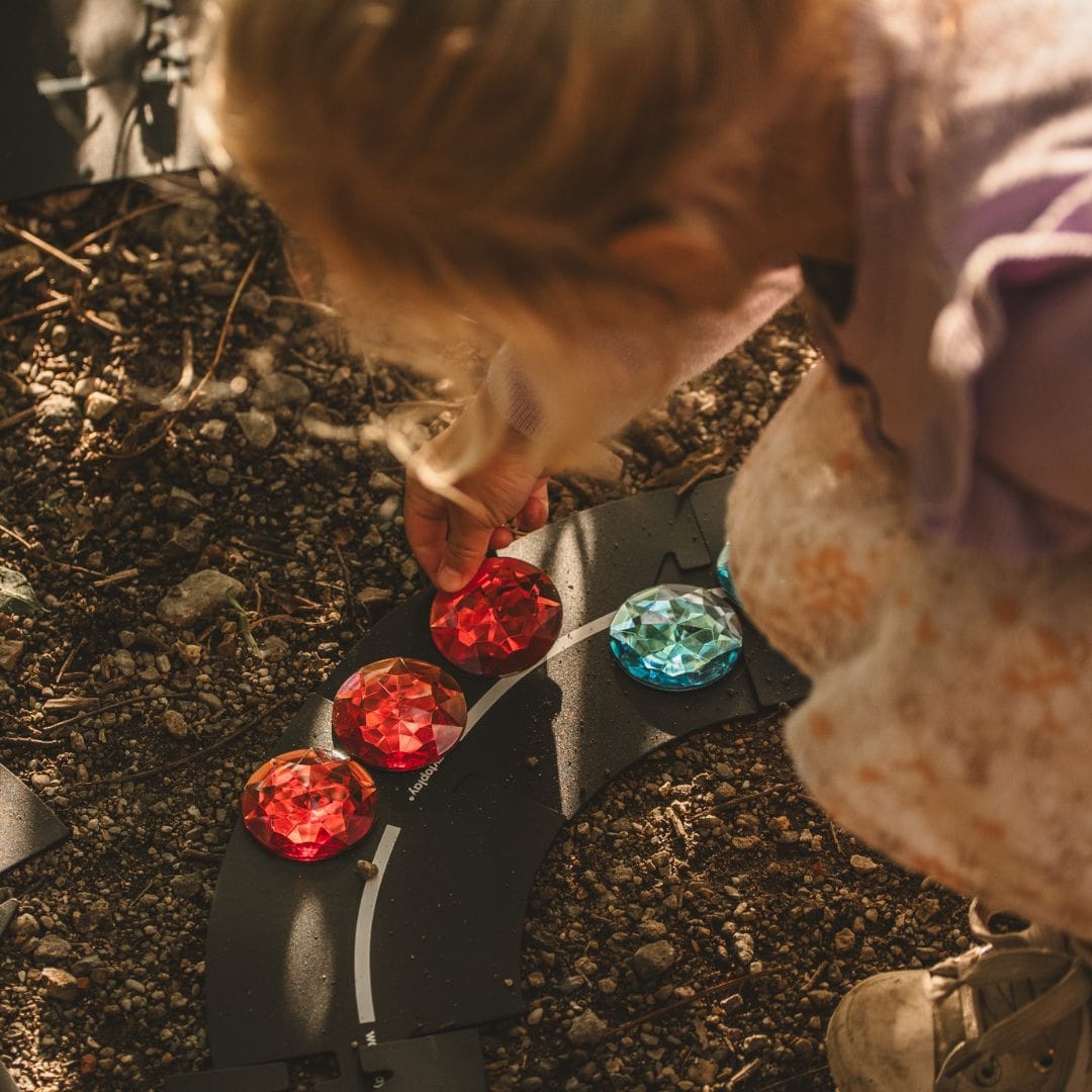 Deze set met 25 super grote glitterstenen nodigt gelijk uit tot spel. Je zult zien dat je kind van alles bedenkt met dit open einde-speelgoed. De glitterstenen hebben een prachtige fonkeling. De stenen zijn perfect te combineren met houten blokken, in het keukentje als etenswaren of in kinetisch zand.
