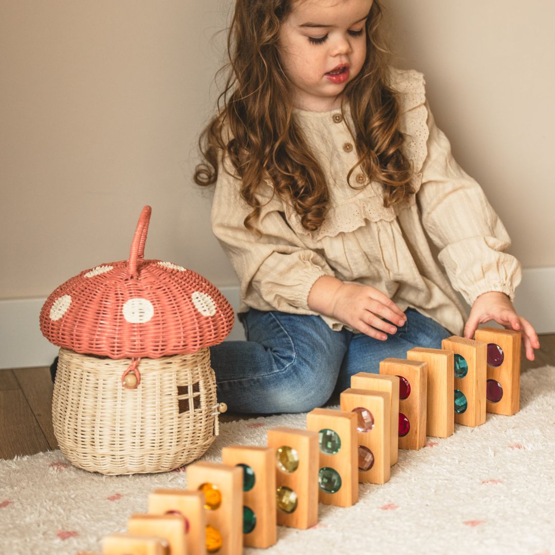 Deze prachtige houten blokken set van Bauspiel bevat maar liefst 45 licht doorlatende acryl blokjes, venster- en glitterblokken. De licht doorlatende vensterblokken en lucent cubes geven een magisch effect tijdens het bouwen. Wanneer je blokjes in het zonlicht zet, reflecteren de kleuren op de vloer. De speelgoedblokken zitten in een houten bewaardoos om de blokken in op te bergen.