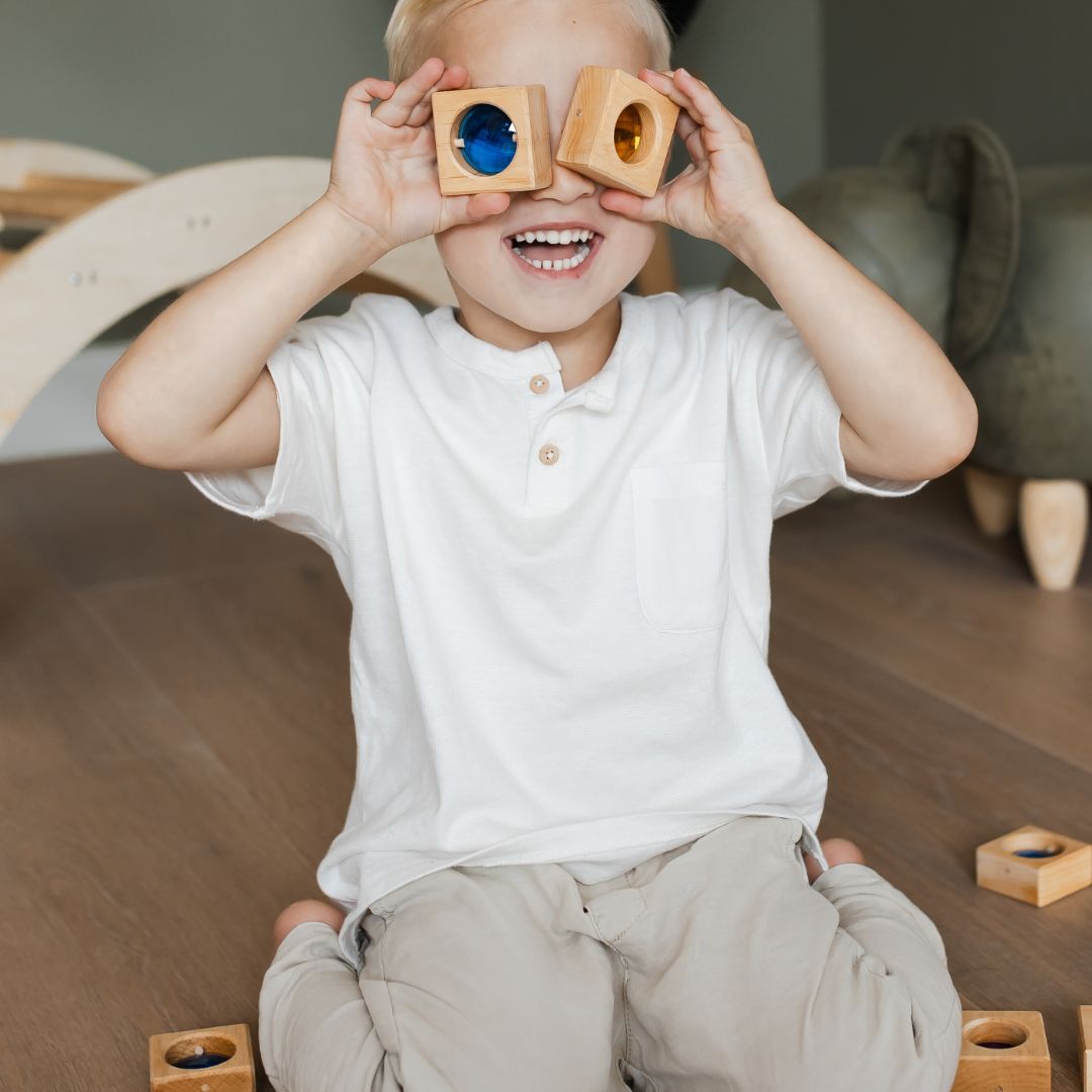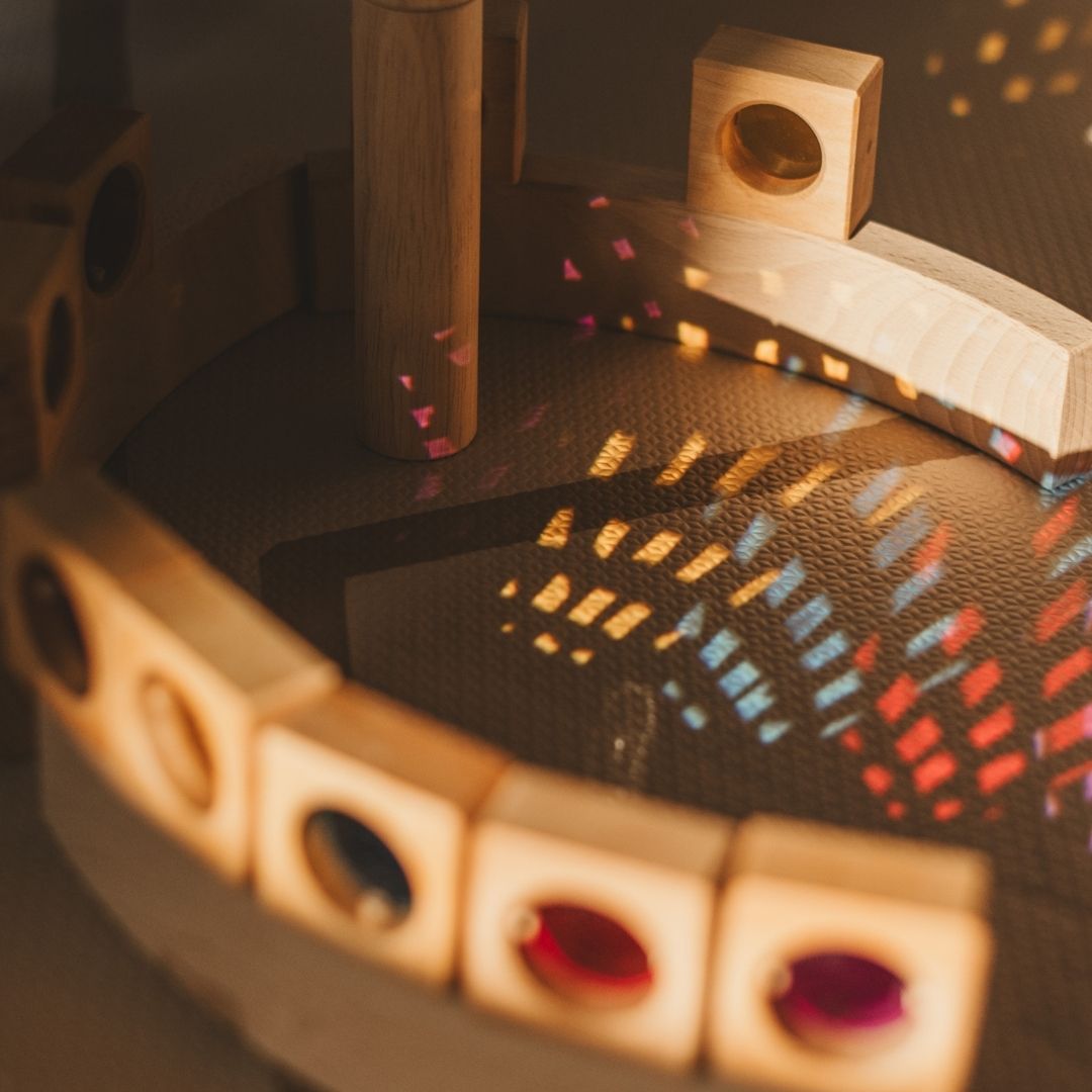 Deze prachtige houten blokken set van Bauspiel bevat maar liefst 25 vensterblokken. De licht doorlatende vensterblokken geven een magisch effect tijdens het bouwen. Wanneer je blokjes in het zonlicht zet, reflecteren de kleuren op de vloer. De speelgoedblokken zitten in een houten bewaardoos om de blokken in op te bergen.