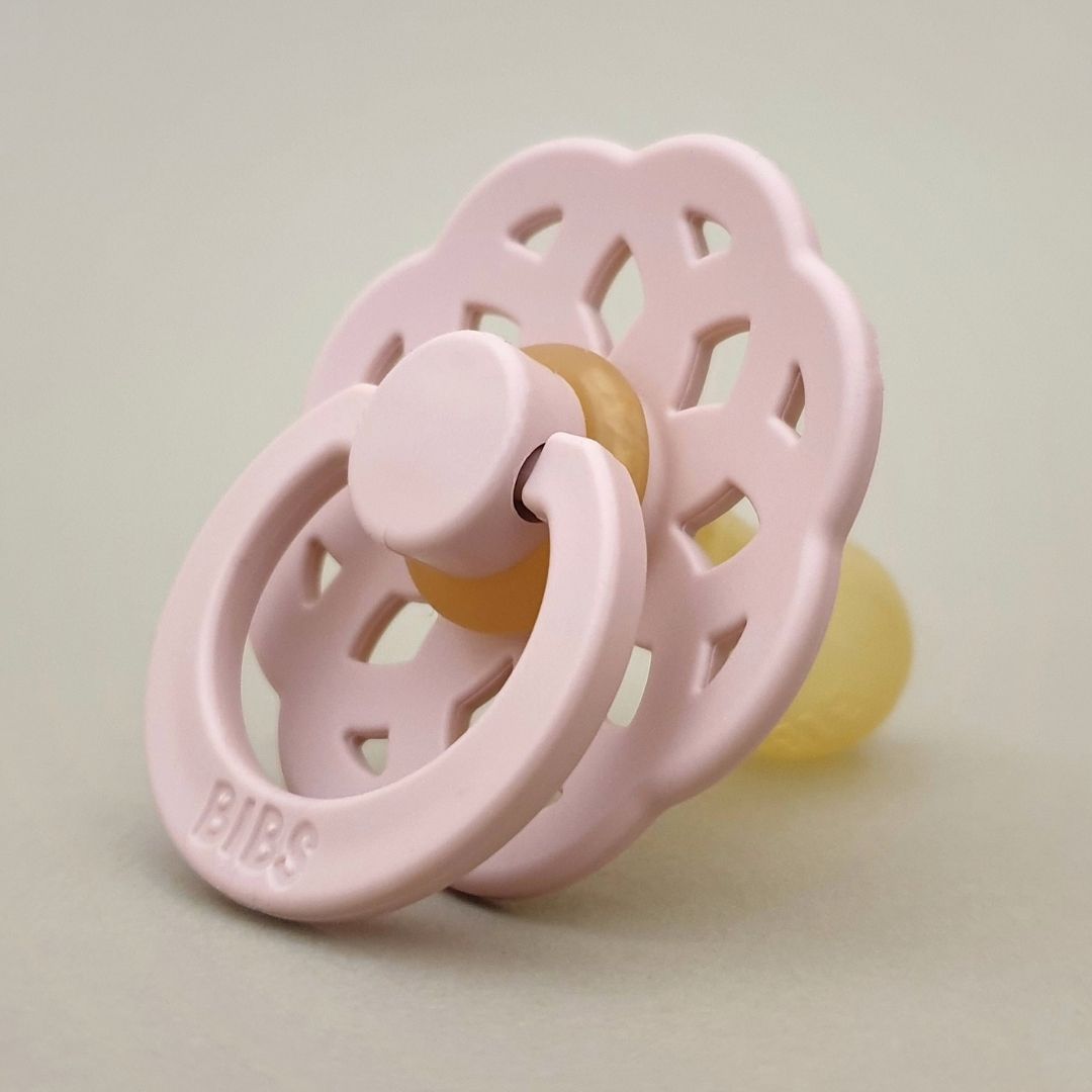 De BIBS Boheme speen heeft een bloemvormig schild met een supermooi geperforeerd patroon. Deze extra ventilatiegaten voorkomen irritatie van de gevoelige huid rondom de mond.