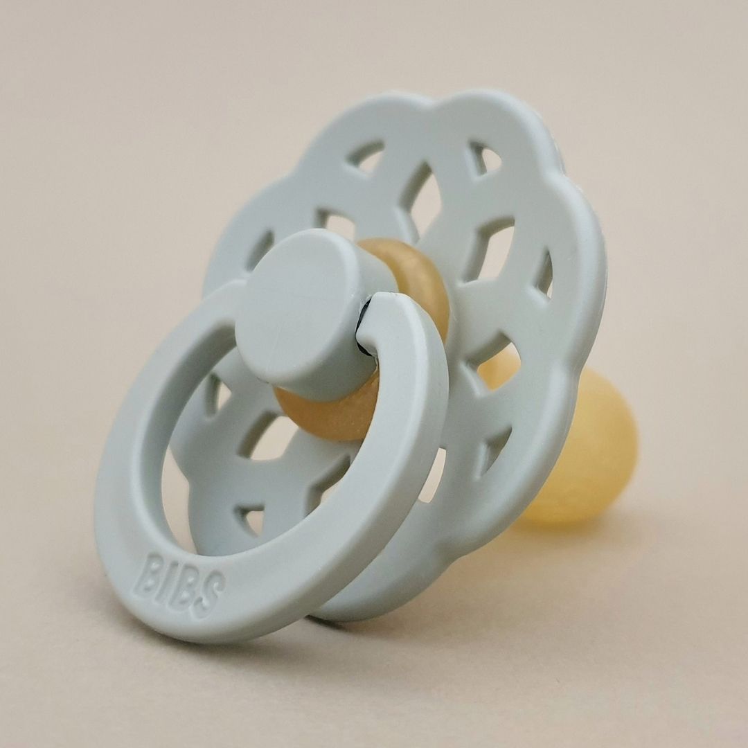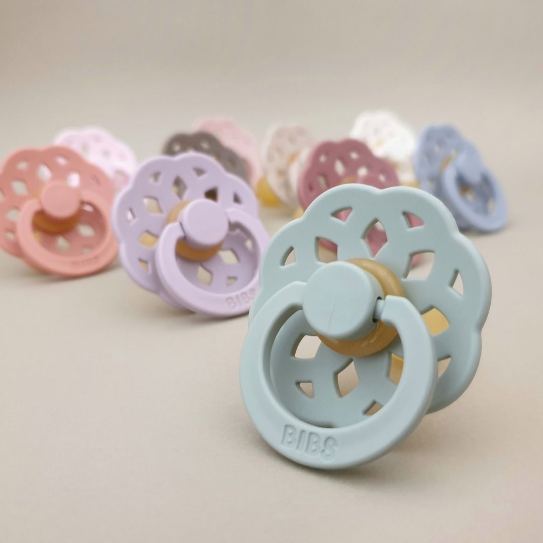 De BIBS Boheme speen heeft een bloemvormig schild met een supermooi geperforeerd patroon. Deze extra ventilatiegaten voorkomen irritatie van de gevoelige huid rondom de mond.