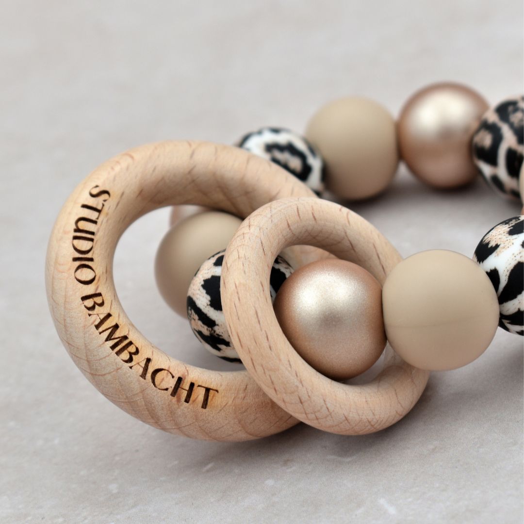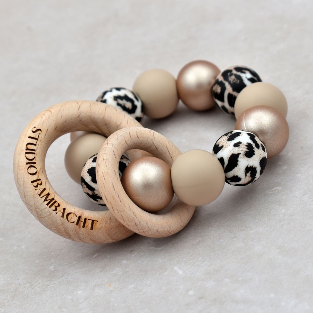 Deze unieke én veilige bijtring luipaard beige is ontworpen en handgemaakt door Iris. Met duurzame materialen en de kwaliteit die je van Studio Bambacht gewend bent. Niet alleen een echte eyecatcher, maar ook een praktische oplossing! Want kauwen of sabbelen op de bijtring verlicht de pijn aan het tandvlees van jouw kleintje.