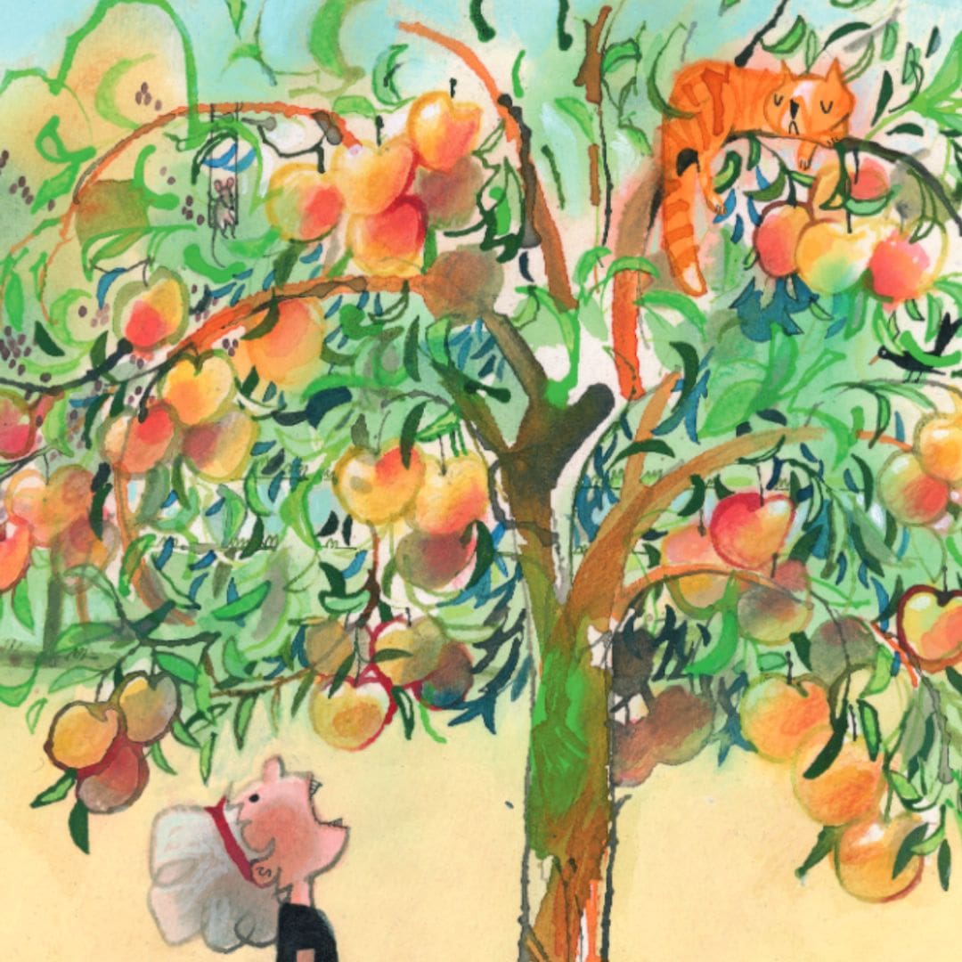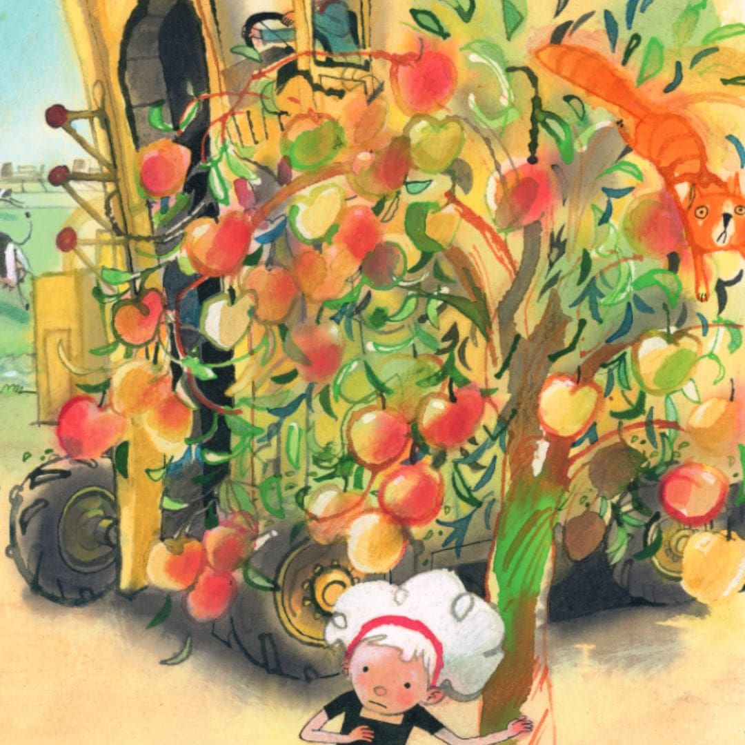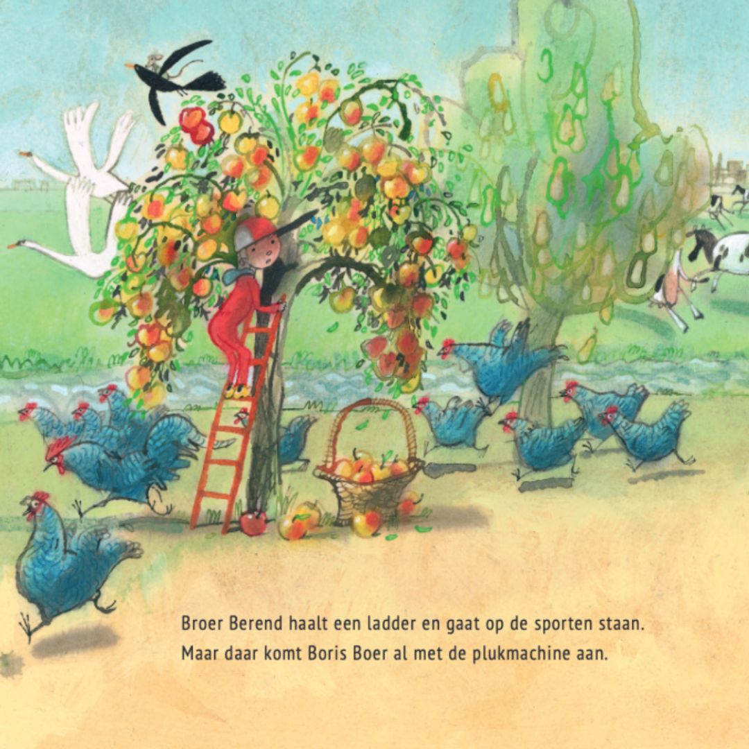 'We gaan ermee,' zegt Boris Boer, 'naar Oma in Den Haag. Die bakt van appels taarten en van peren maakt ze sap, en van pruimen maakt ze jam voor op beschuit en in de pap.'