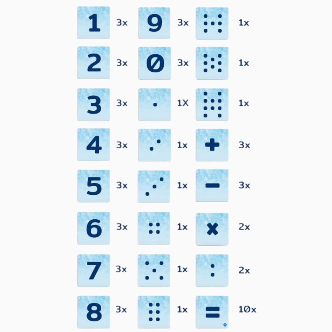- Inhoud: 30 toppers met de cijfers 0-9 numeriek, 10 toppers m et de cijfers 0-9 in stippen weergegeven, 20 toppers met rekentekens