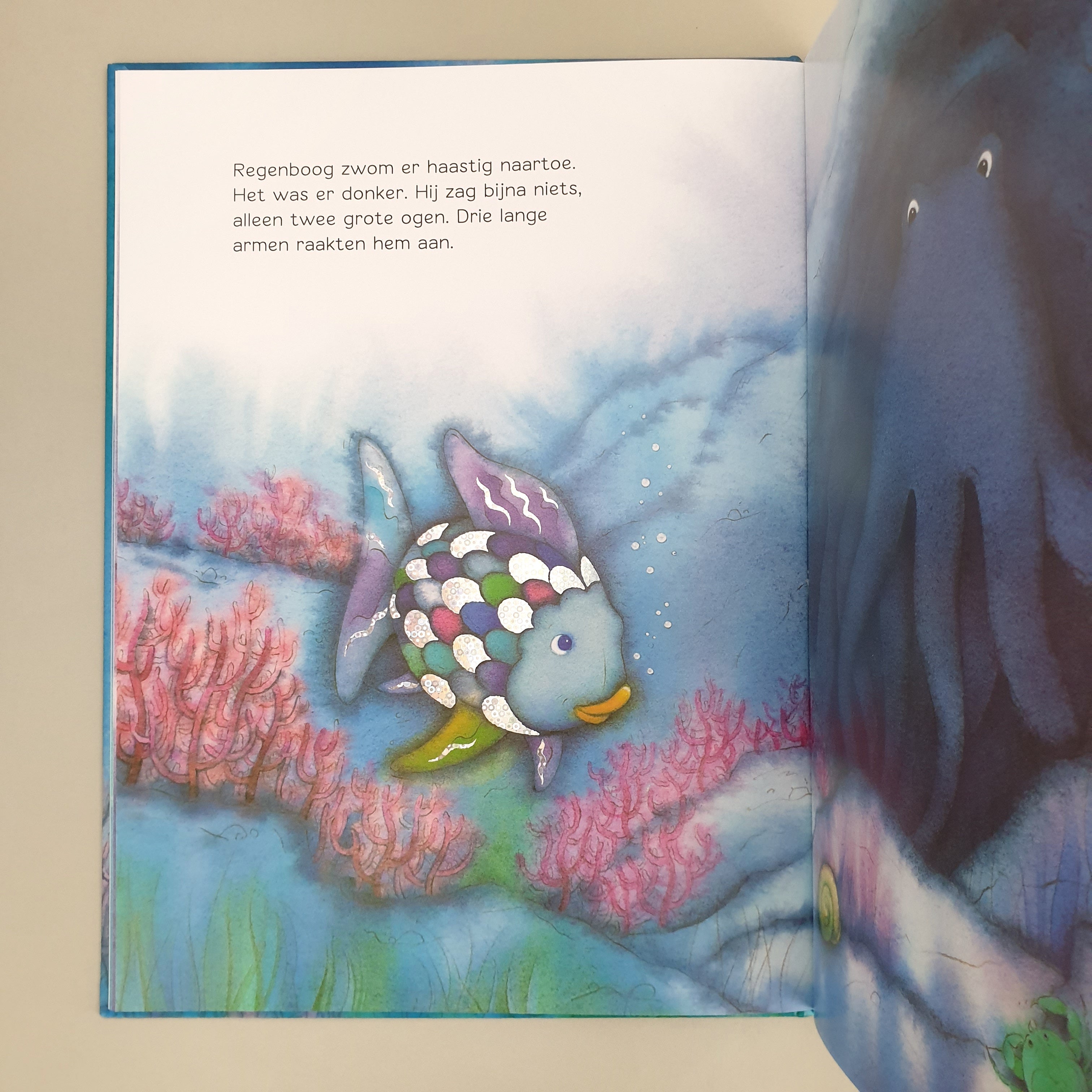 Regenboog is een vis met mooie, bijzondere schubben – de mooiste vis van de zee. Een jonge vis wil graag een van zijn mooie glimmende schubben, maar Regenboog wil zijn schubben niet delen. De andere vissen vinden Regenboog daarom niet leuk en spelen zonder hem. Dat maakt Regenboog verdrietig. Pas als hij een van zijn mooi schubben deelt met de andere vissen, willen ze met hem spelen. Zo ontdekt Regenboog dat het belangrijk is om te delen wat je hebt.