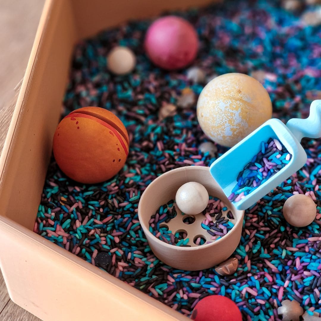 Kinderen zullen het spelen met een zeef geweldig vinden. Het is het ideale speelgoed in combinatie met kinetisch zand of speelrijst. Spelen met dit open einde speelgoed stimuleert en bevordert de fijne motoriek van kinderen.