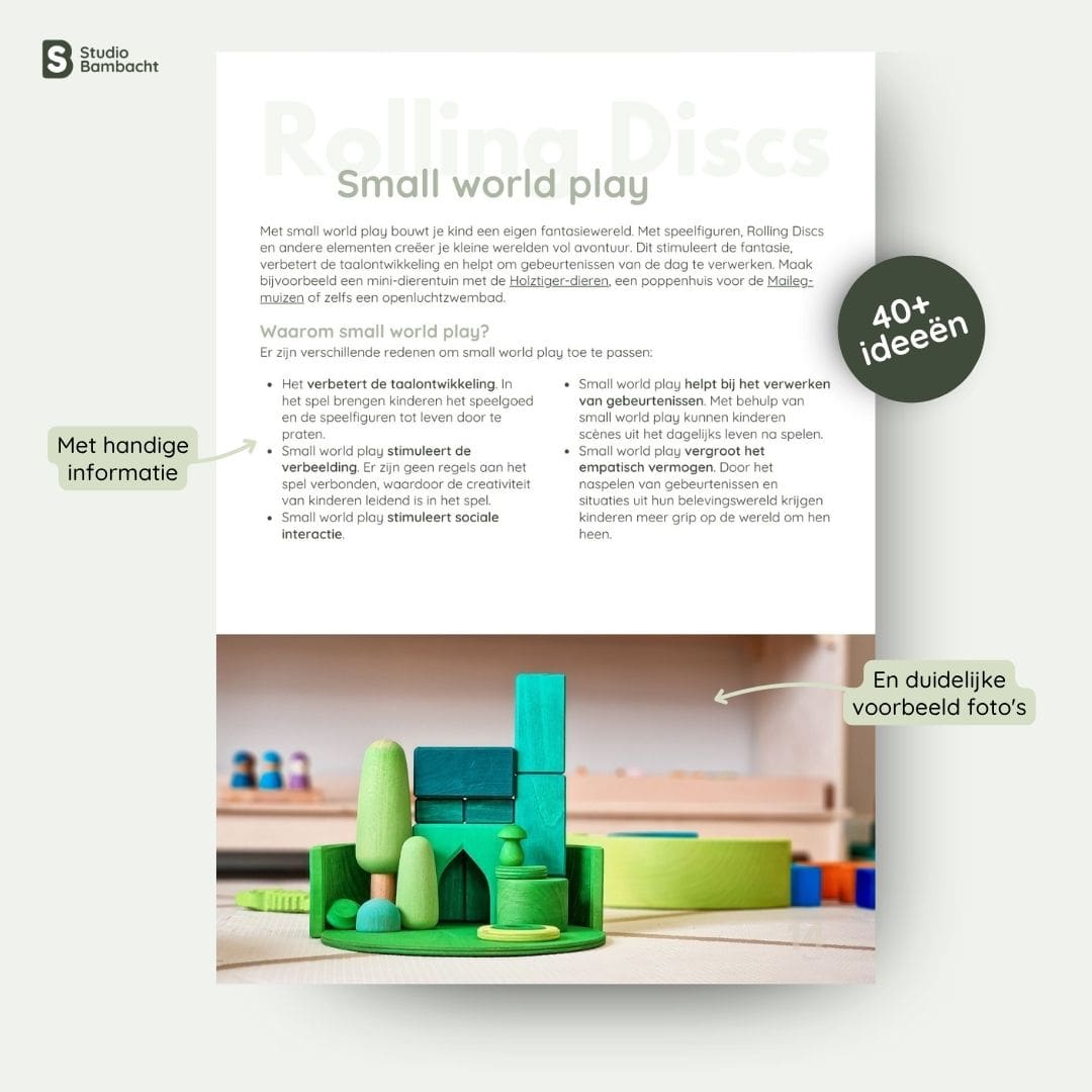Met de Rolling Discs van Grimm's x Stapelstein kun je heel veel kanten op. Je kunt er veel meer mee dan balletjes rollen. Benieuwd naar heel veel leuke speltips met de Rolling Discs? Bestel de ‘Grimm's x Stapelstein Rolling Disc speelgids’ boordevol spelinspiratie. Het bevat maar liefst 40+ spelideeën om je op weg te helpen en te inspireren. Met 40 pagina’s aan ideeën en educatieve opdrachten weet je zeker dat jouw kind niet meer uitgespeeld raakt.