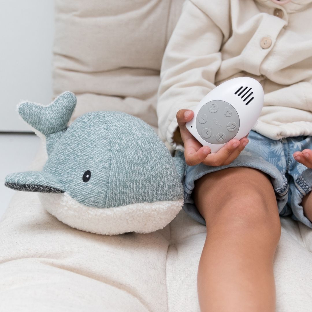 De hartslag knuffel walvis van Flow Amsterdam kan zomaar eens het beste vriendje van je kindje worden. Een hartslag knuffel zorgt voor geborgenheid, biedt troost en helpt je baby rustig in slaap vallen. Je kunt kiezen voor witte ruis, hartslag of een slaapmelodietje. Extra fijn: deze hartslag knuffel heeft een timer, maar schakelt dankzij de huilsensor automatisch aan als je baby huilt.