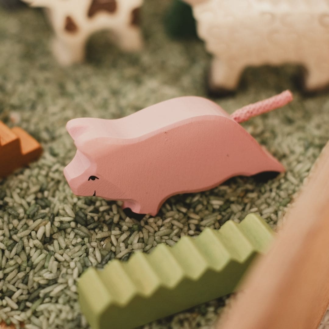 Houten biggetje van Holztiger. Het biggetje is makkelijk vast te pakken en prikkelt de fantasie van je kind.