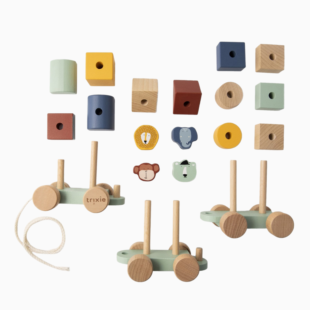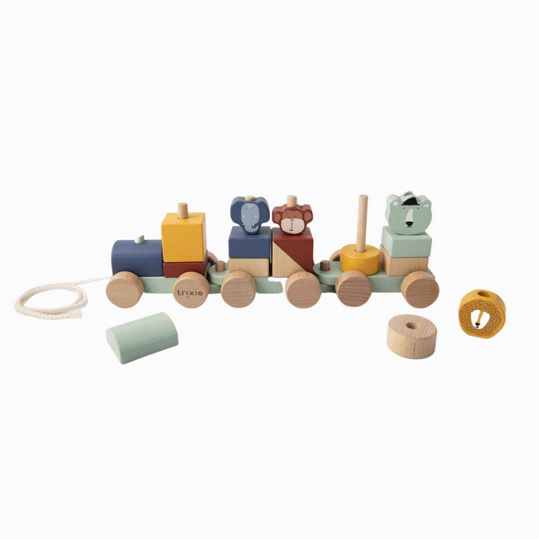 Spring op houten blokkentrein van Trixie om samen met de dierenvriendjes op avontuur te gaan. Mr. Lion, Mr. Monkey, Mrs. Elephant en Mr. Polar Bear kunnen niet wachten om te vertrekken. De houten blokkentrein stimuleert de creativiteit, omdat het jouw kleintje met de blokken steeds weer andere wagons kan bouwen. Met het touwtje aan de voorkant kan jouw kleintje de blokkentrein door de kamer trekken.